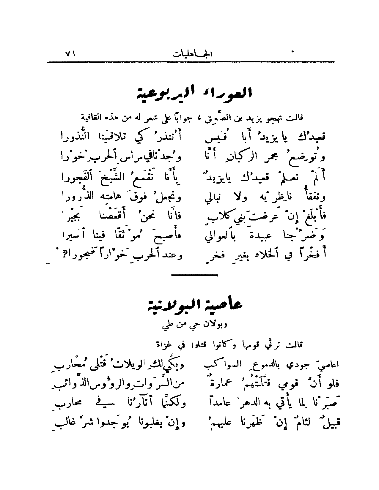 قالت تهجو يزيد بن الصعق: جواباً له على شعرٍ نظمه فيها من هذه القافية: (من الوافر)