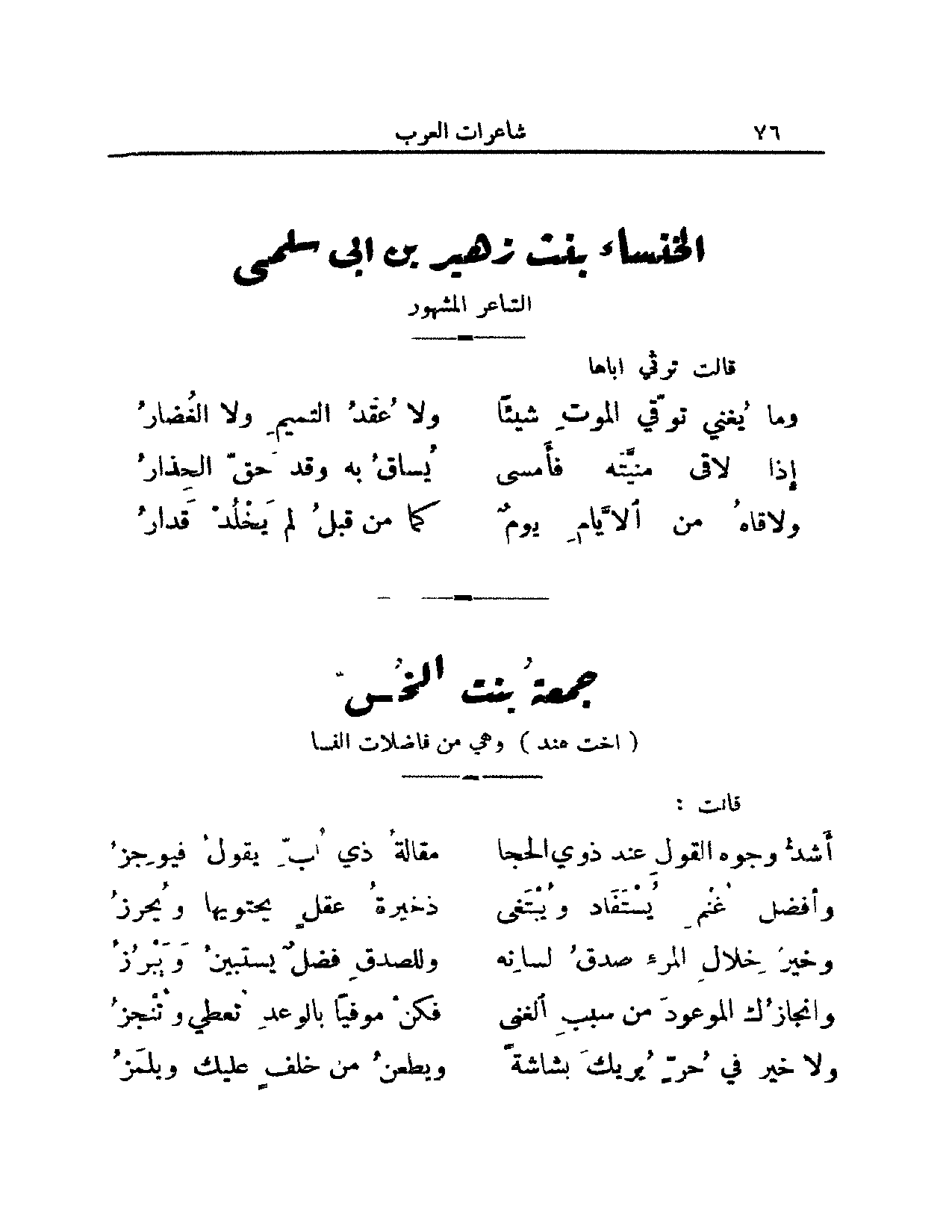 شهرتها بأبيها زهير بن أبي سلمى شاعر المعلقة المشهورة التي جاء فيها: