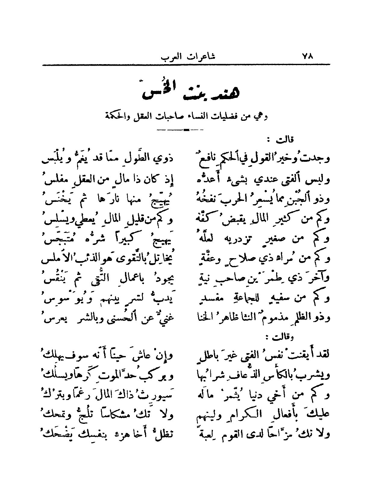 قالت هند بنت الخس في التجارب والحكمة: (من الطويل)