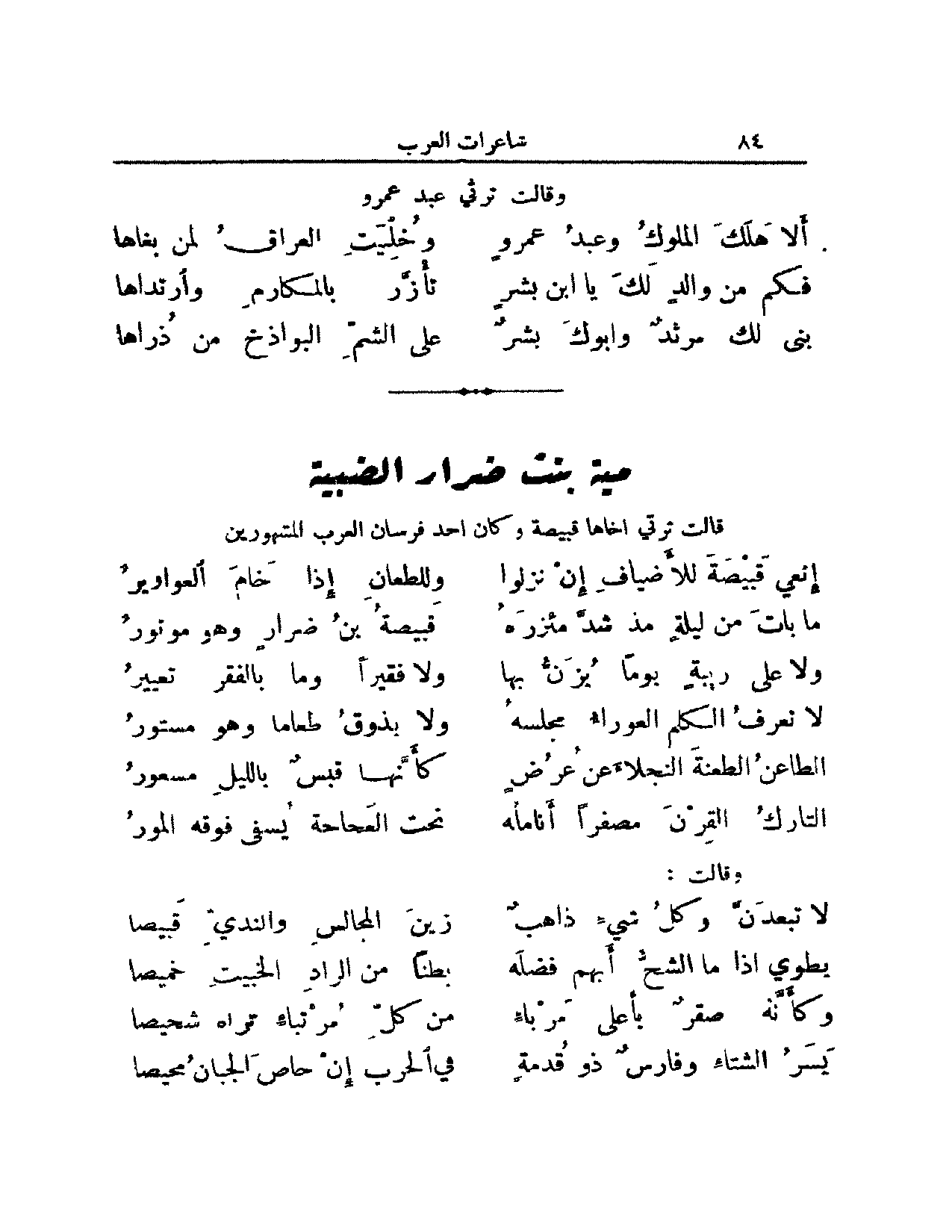 قالت ترثي أخاها قبيصة وكان أحد فرسان العرب المشهورين: