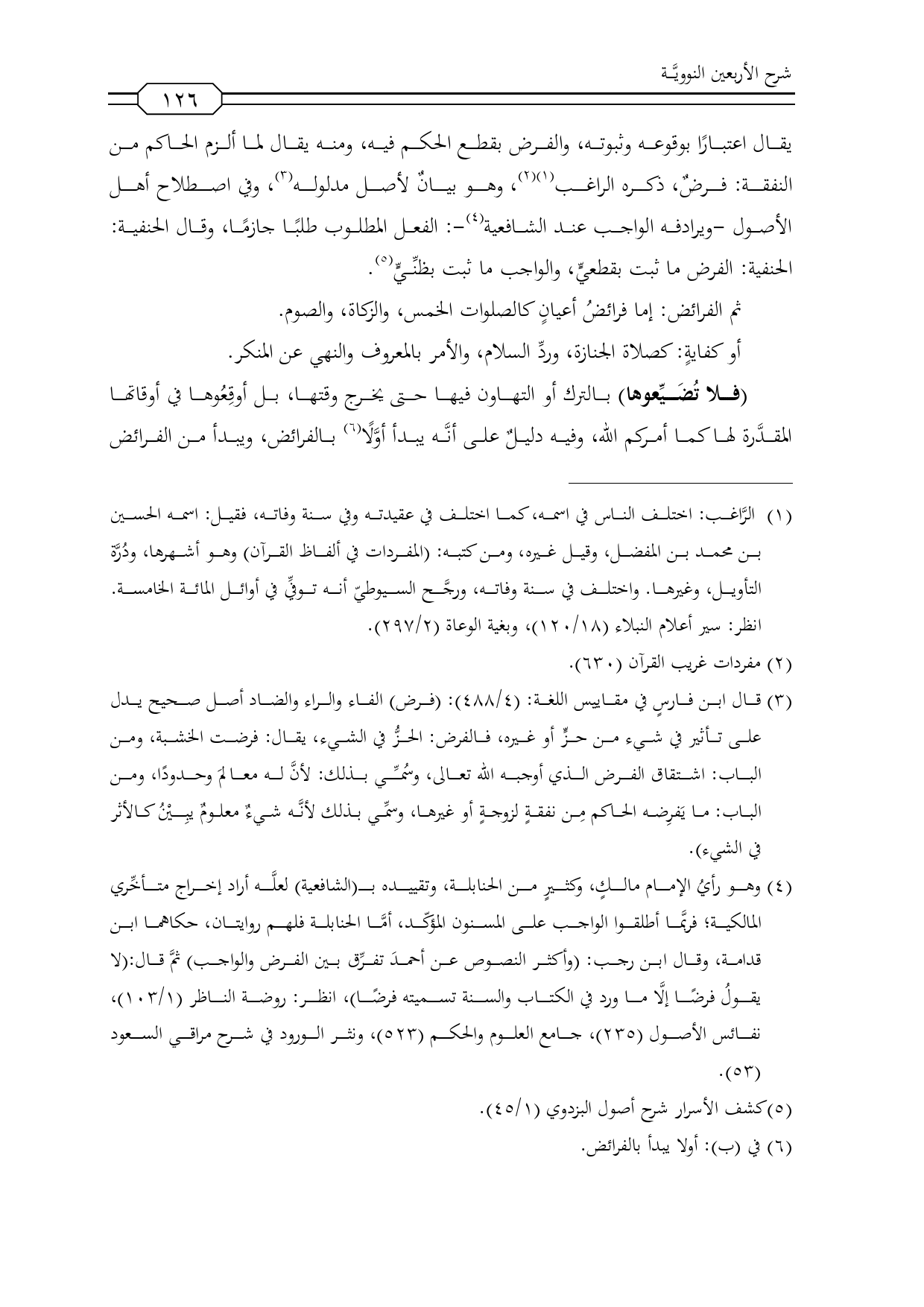 (¬3) قال ابن فارسٍ في مقاييس اللغة: (4/ 488): (فرض) الفاء والراء والضاد أصل صحيح يدل على تأثير في شيء من حزٍّ أو غيره, فالفرض: الحزُّ في الشيء، يقال: فرضت الخشبة، ومن الباب: اشتقاق الفرض الذي أوجبه الله تعالى، وسُمِّي بذلك: لأنَّ له معالمَ وحدودًا، ومن الباب: ما يَفرِضه الحاكم مِن نفقةٍ لزوجةٍ أو غيرها، وسمِّي بذلك لأنَّه شيءٌ معلومٌ يبِيْنُ كالأثر في الشيء) ..