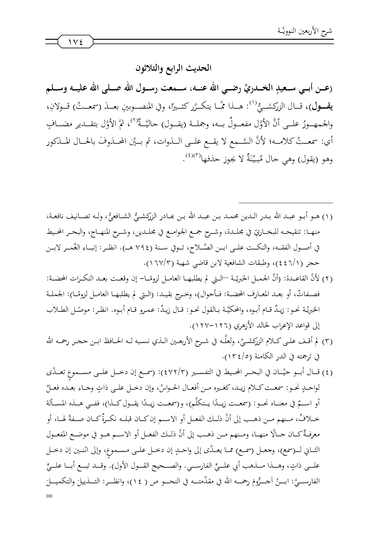 (¬3) لم أقف على كلام الزركشيِّ، ولعلَّه في شرح الأربعين الذي نسبه له الحافظ ابن حجر رحمه الله في ترجمته في الدر الكامنة (5/ 134) ..