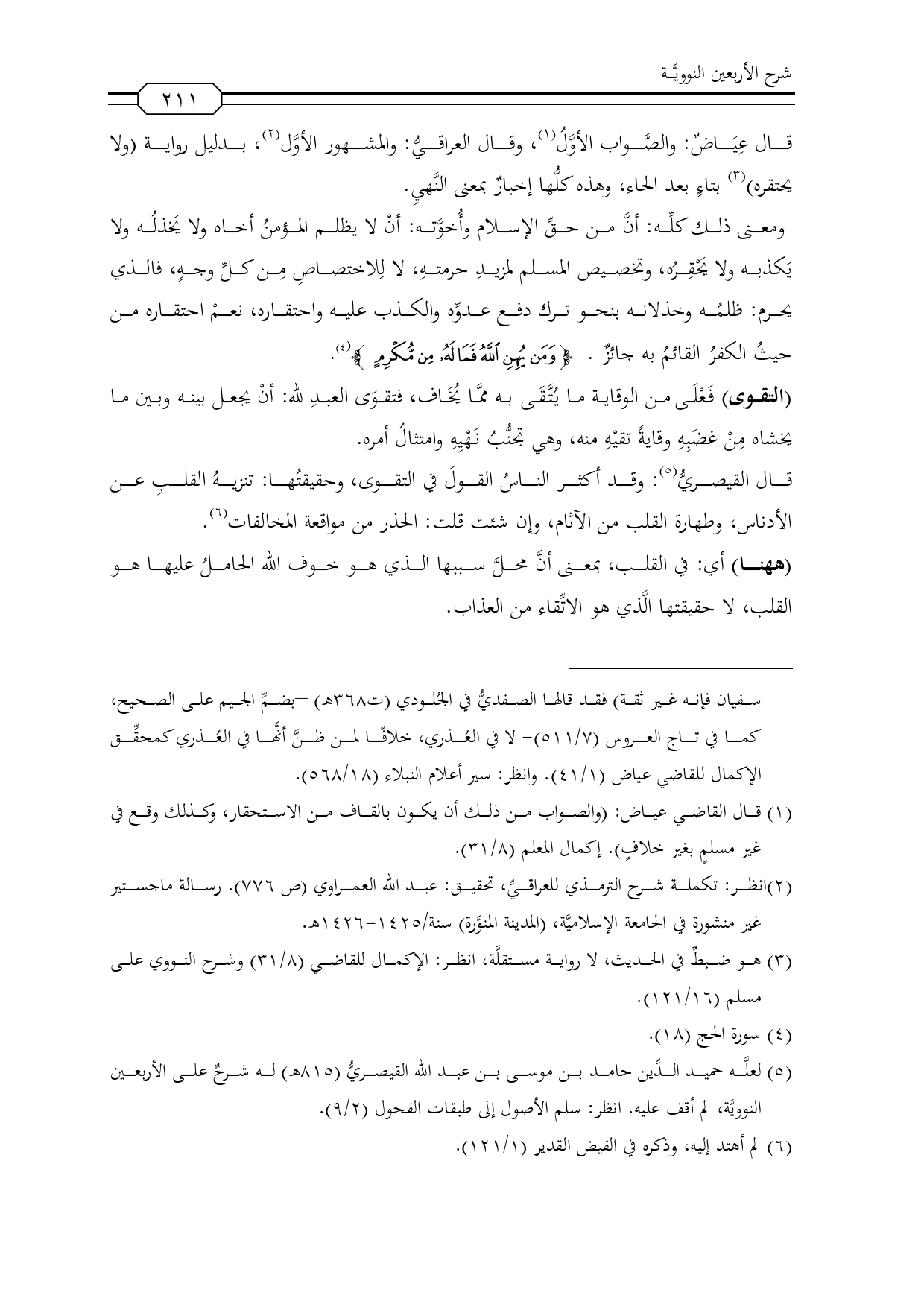 (¬5) لعلَّه حميد الدِّين حامد بن موسى بن عبد الله القيصريُّ (815 هـ) له شرحٌ على الأربعين النوويَّة, لم أقف عليه. انظر: سلم الأصول إلى طبقات الفحول (2/ 9).