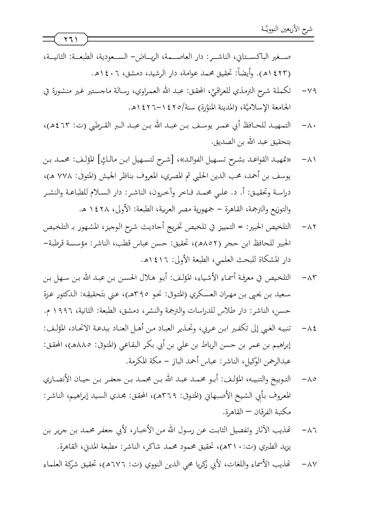 79 - تكملة شرح الترمذي للعراقيِّ، المحقق: عبد الله العمراوي, رسالة ماجستير غير منشورة في الجامعة الإسلاميَّة، (المدينة المنوَّرة) سنة/1425 - 1426 هـ.