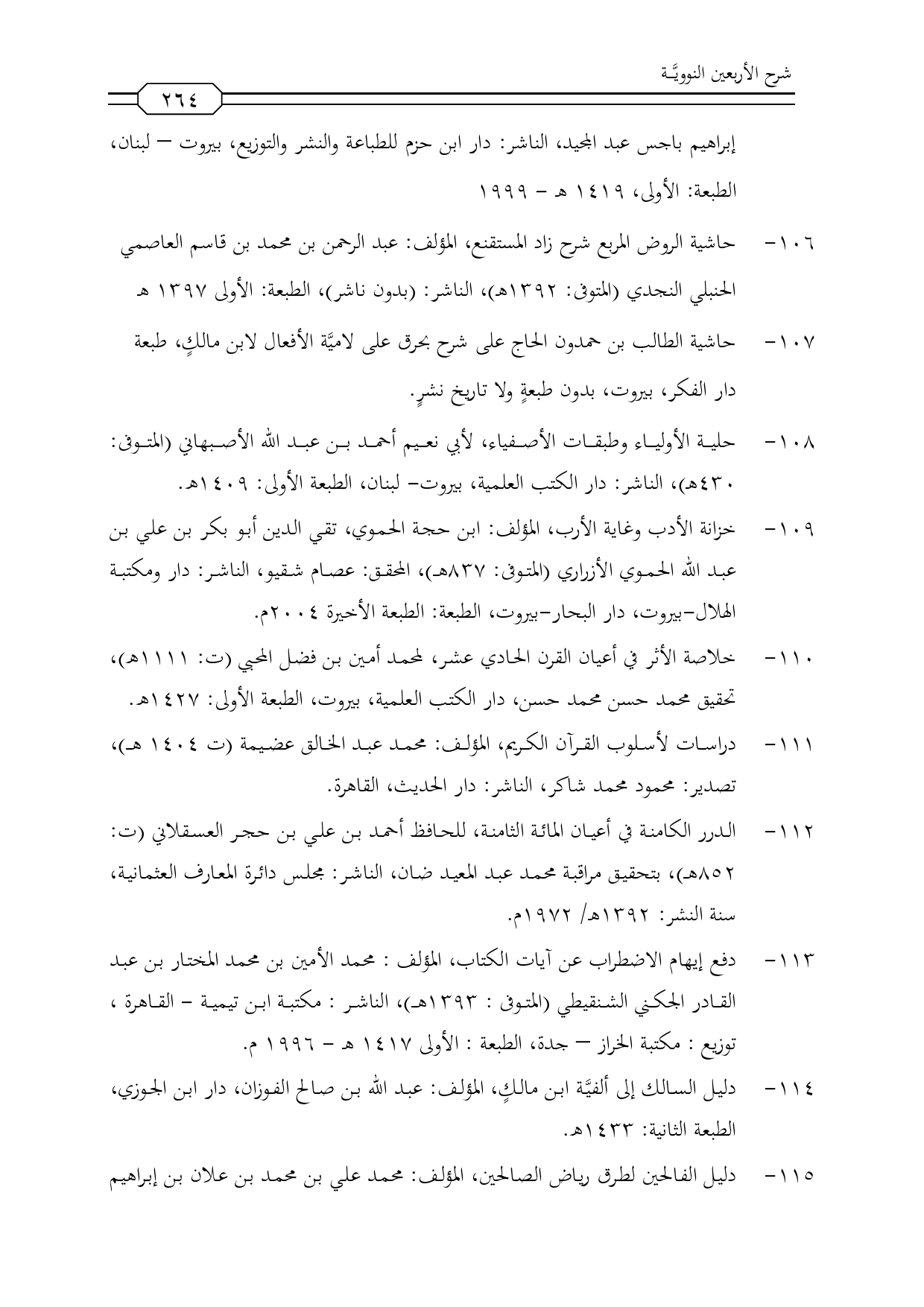 110 - خلاصة الأثر في أعيان القرن الحادي عشر، لمحمد أمين بن فضل المحبي (ت: 1111 هـ)، تحقيق محمد حسن محمد حسن، دار الكتب العلمية، بيروت، الطبعة الأولى: 1427 هـ.