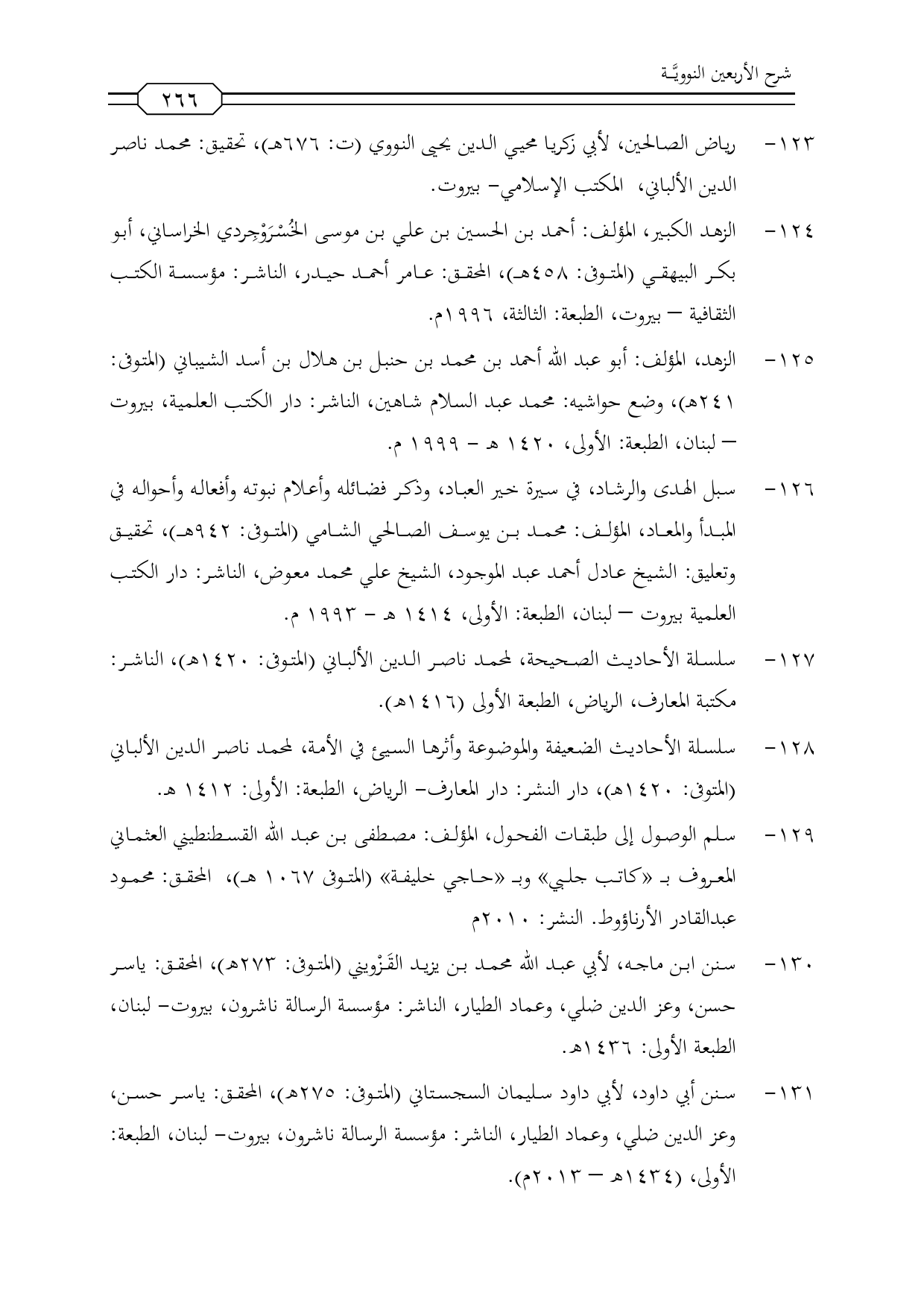 123 - رياض الصالحين، لأبي زكريا محيي الدين يحيى النووي (ت: 676 هـ)، تحقيق: محمد ناصر الدين الألباني، المكتب الإسلامي- بيروت.