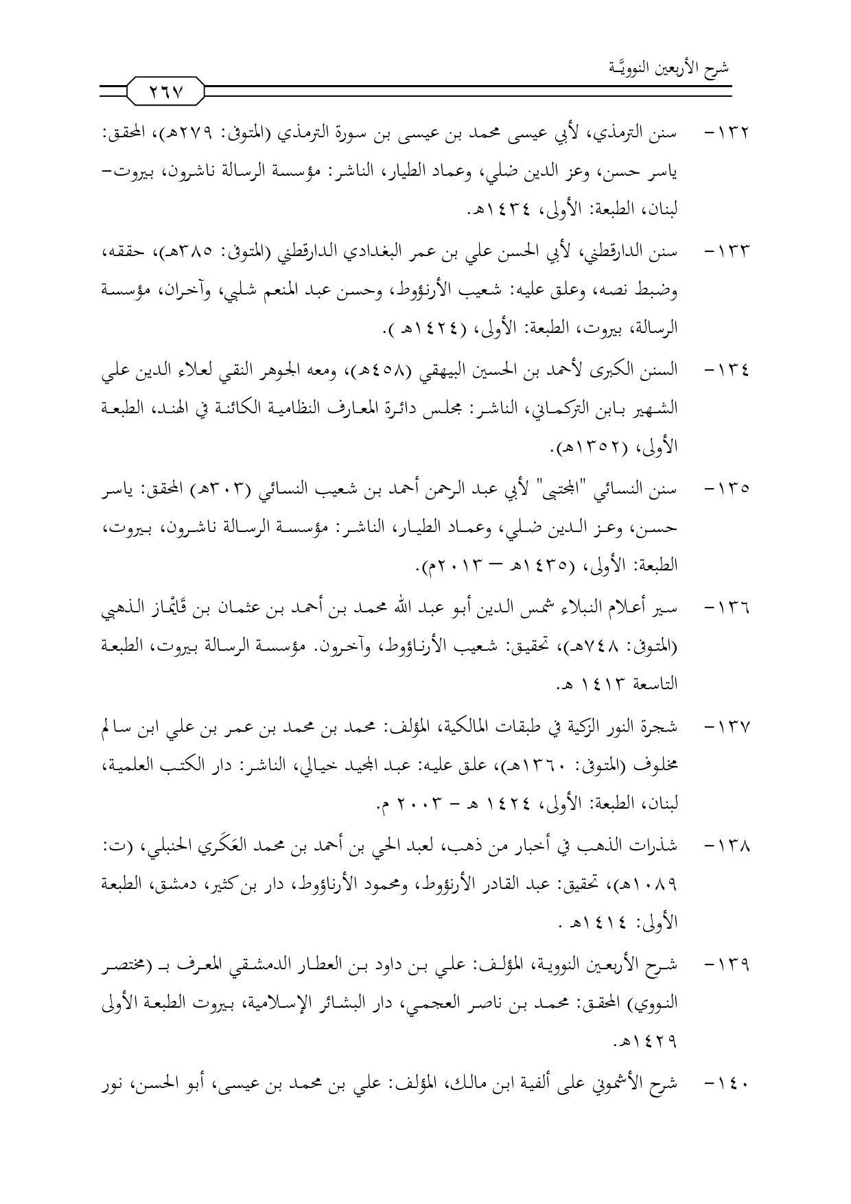 139 - شرح الأربعين النووية, المؤلف: علي بن داود بن العطار الدمشقي المعرف بـ (مختصر النووي) المحقق: محمد بن ناصر العجمي, دار البشائر الإسلامية, بيروت الطبعة الأولى 1429 هـ.