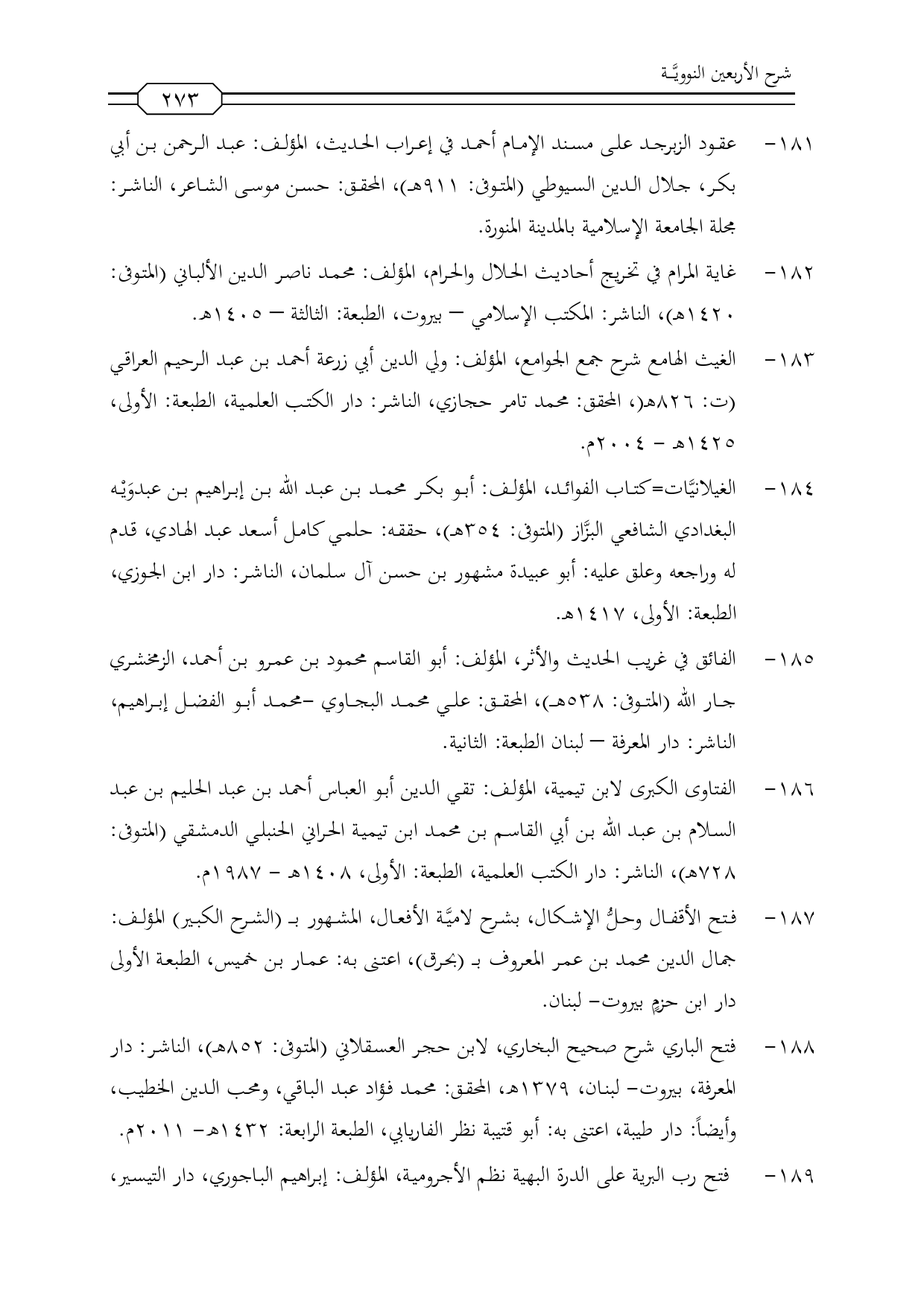 34 - عقود الزبرجد على مسند الإمام أحمد في إعراب الحديث, المؤلف: عبد الرحمن بن أبي بكر، جلال الدين السيوطي (المتوفى: 911 هـ) , المحقق: حسن موسى الشاعر, الناشر: مجلة الجامعة الإسلامية بالمدينة المنورة.