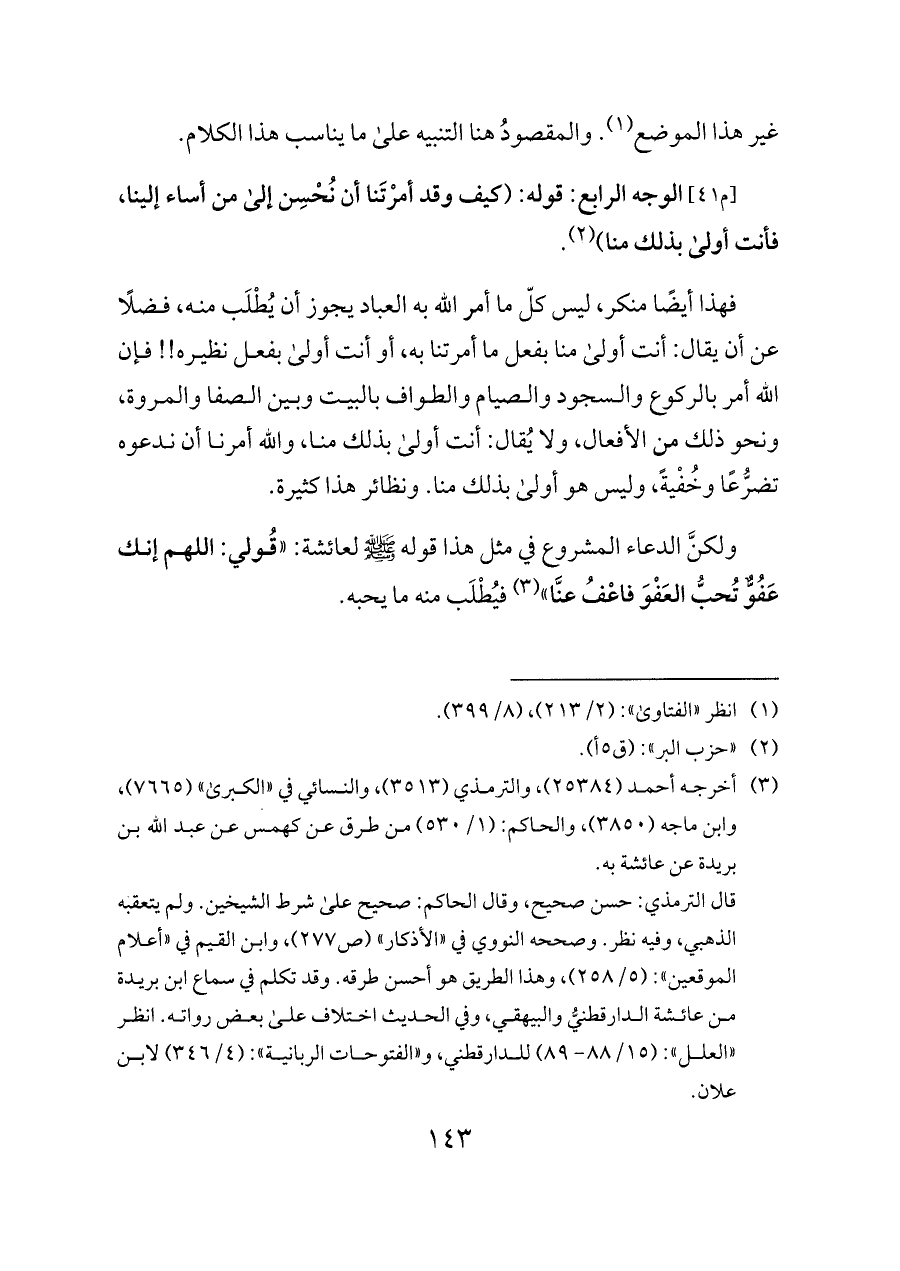 [م ٤١] الوجه الرابع: قوله: (كيف وقد أمرْتَنا أن نُحْسِن إلى من أساء إلينا، فأنت أولى بذلك منا) (¬٢).