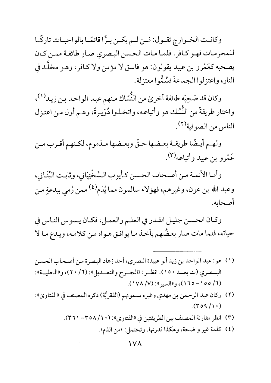 ولهم أيضًا طريقة بعضها حقّ وبعضها مذموم، لكنهم أقرب من عَمْرو بن عبيد وأتباعه (¬٣).
