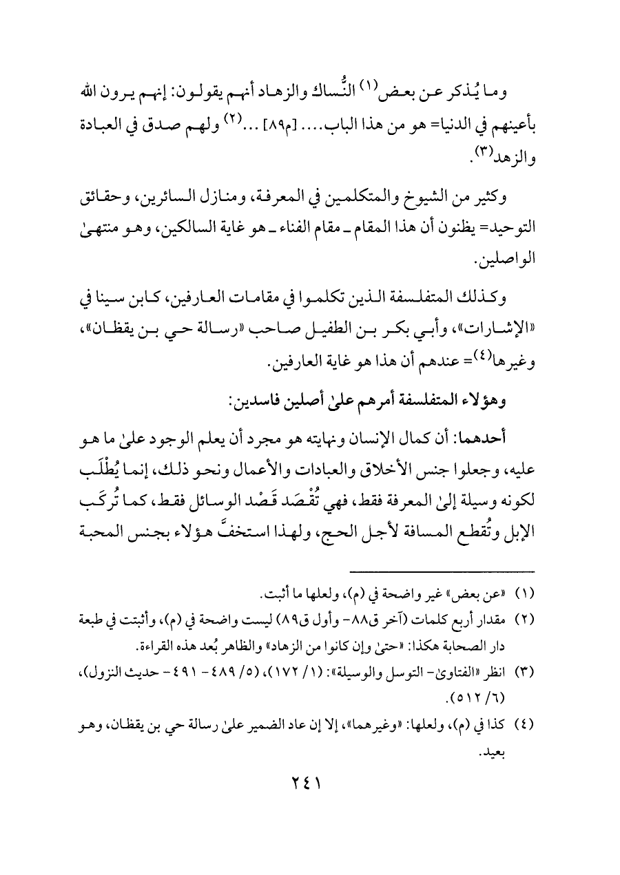 (¬٢) مقدار أربع كلمات (آخر ق ٨٨ - وأول ق ٨٩) ليست واضحة في (م)، وأثبتت في طبعة دار الصحابة هكذا: «حتى وإن كانوا من الزهاد» والظاهر بُعد هذه القراءة.