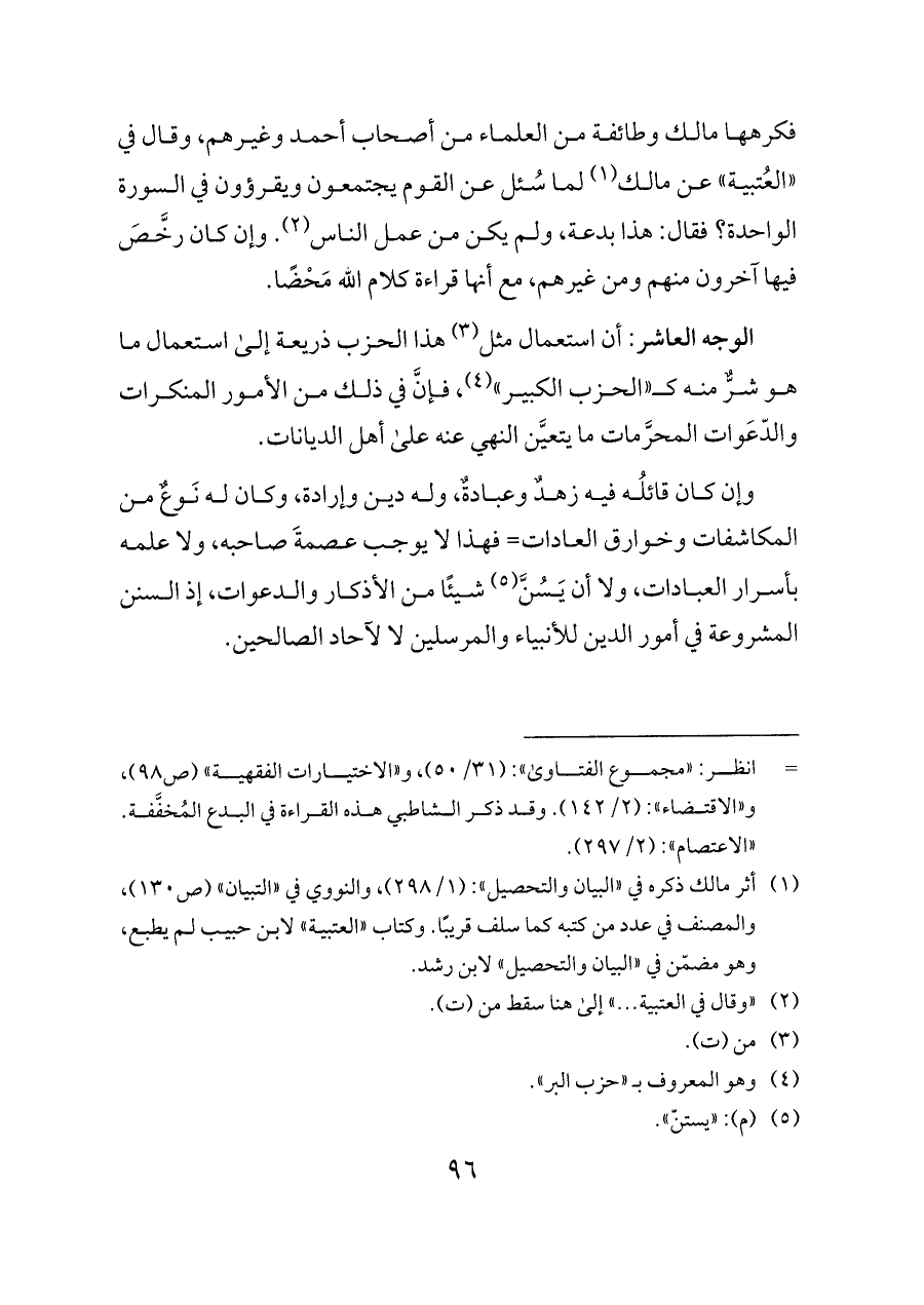 الوجه العاشر: أن استعمال مثل (¬٣) هذا الحزب ذريعة إلى استعمال ما هو شرٌّ منه كـ «الحزب الكبير» (¬٤)، فإنَّ في ذلك من الأمور المنكرات والدّعَوات المحرَّمات ما يتعيَّن النهي عنه على أهل الديانات.