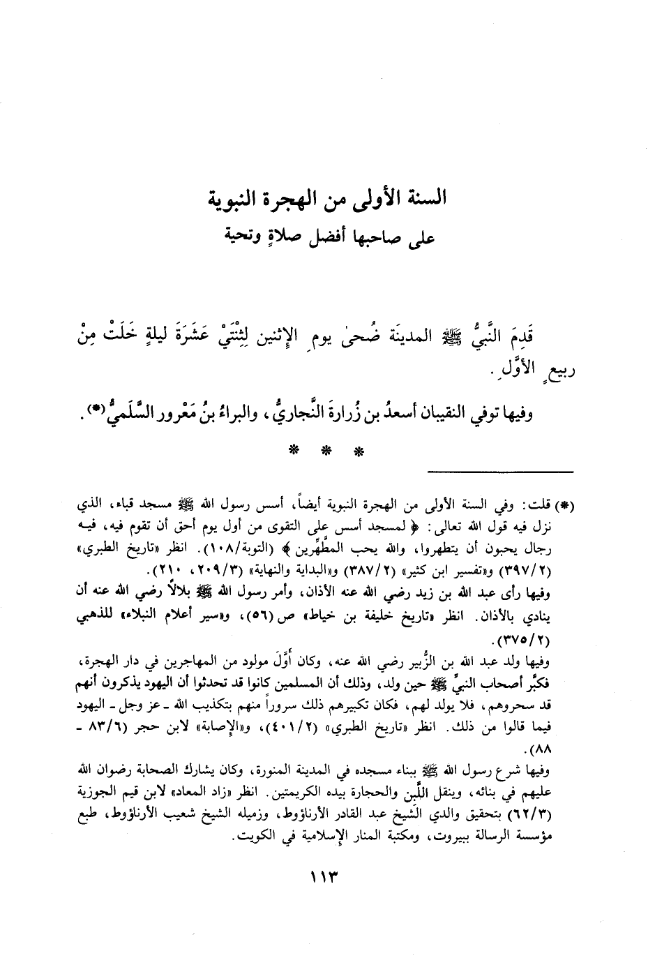 [1] قلت: وفي السنة الأولى من الهجرة النبوية أيضا، أسس رسول الله صلى الله عليه وسلم مسجد قباء، الذي نزل فيه قول الله تعالى: لَمَسْجِدٌ أُسِّسَ عَلَى التَّقْوى من أَوَّلِ يَوْمٍ أَحَقُّ أَنْ تَقُومَ فِيهِ، فِيهِ رِجالٌ يُحِبُّونَ أَنْ يَتَطَهَّرُوا، وَالله يُحِبُّ الْمُطَّهِّرِينَ 9: 108 (التوبة/ 108) . انظر «تاريخ الطبري» (2/ 397) و «تفسير ابن كثير» (2/ 387) و «البداية والنهاية» (3/ 209، 210) .