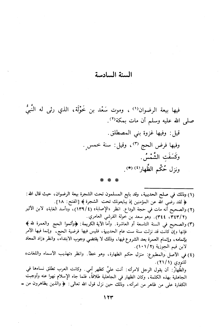 [3] والصحيح في السنة التاسعة أو العاشرة. وأما الآية الكريمة: وَأَتِمُّوا الْحَجَّ وَالْعُمْرَةَ لِلَّهِ 2: 196 فإنها وإن كانت قد نزلت سنة ست عام الحديبية، فليس فيها فرضية الحج، وإنما فيها الأمر بإتمامه، وإتمام العمرة بعد الشروع فيها، وذلك لا يقتضي وجوب الابتداء، وانظر «زاد المعاد لابن قيم الجوزية (2/ 101) .