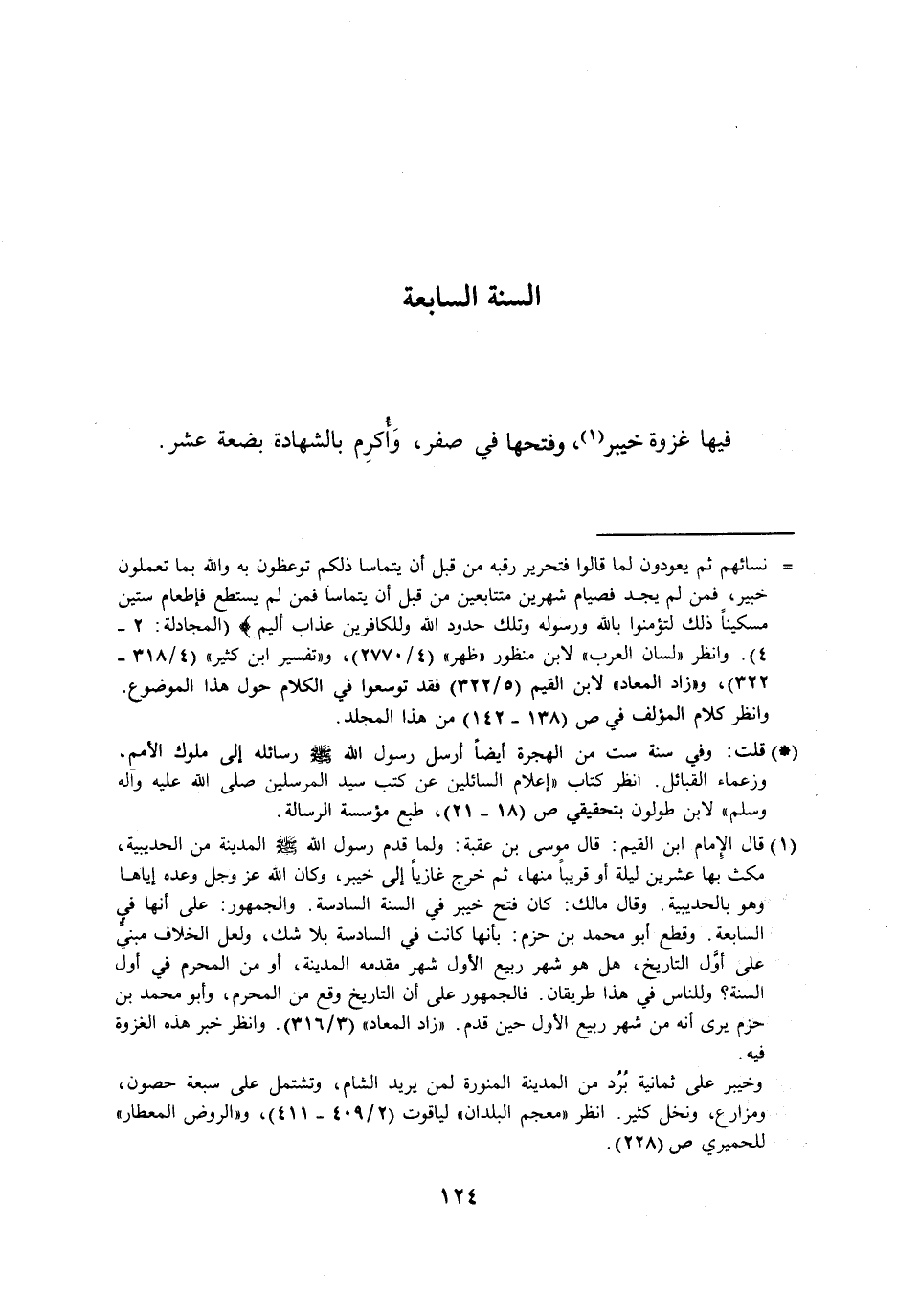 فيها غزوة خيبر [1] ، وفتحها في صفر، وأكرم بالشهادة بضعة عشر.