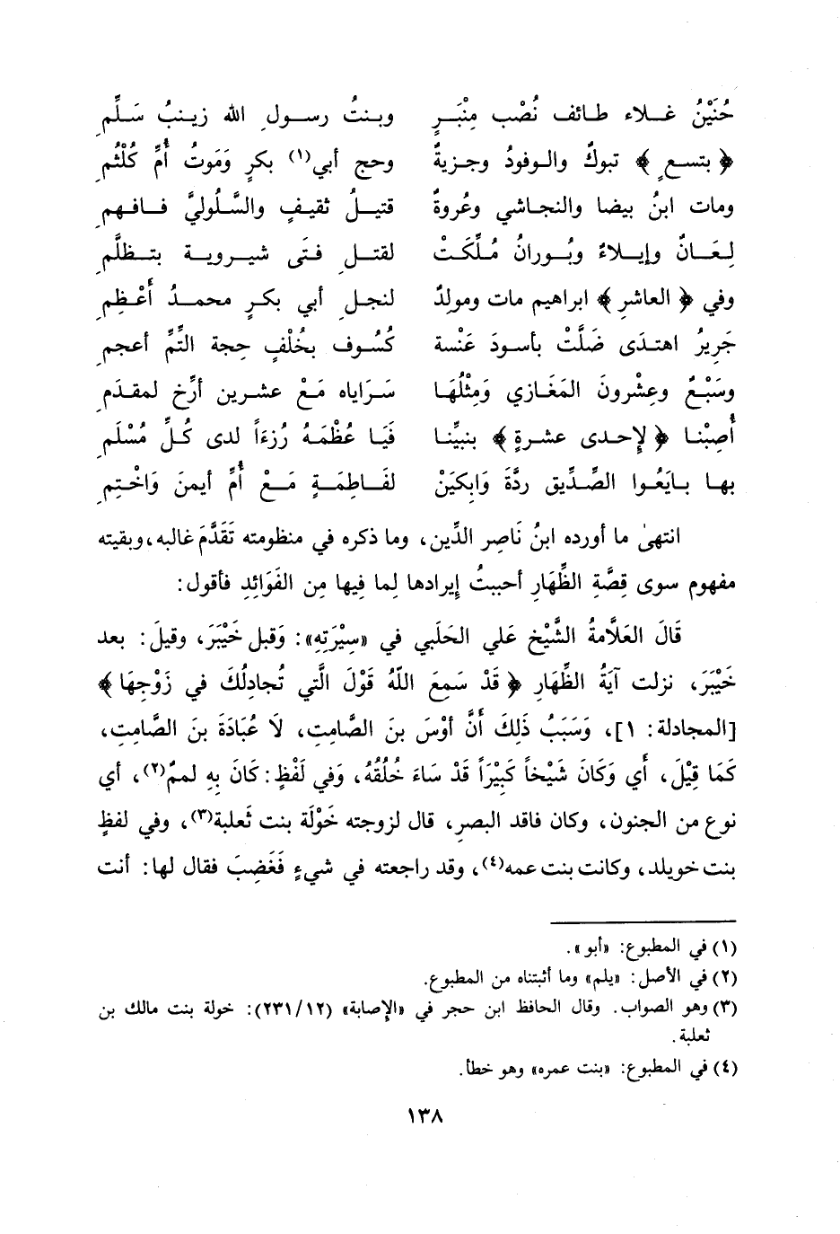 انتهى ما أورده ابن ناصر الدّين، وما ذكره في منظومته تقدّم غالبه، وبقيته مفهوم سوى قصّة الظّهار أحببت إيرادها لما فيها من الفوائد فأقول: