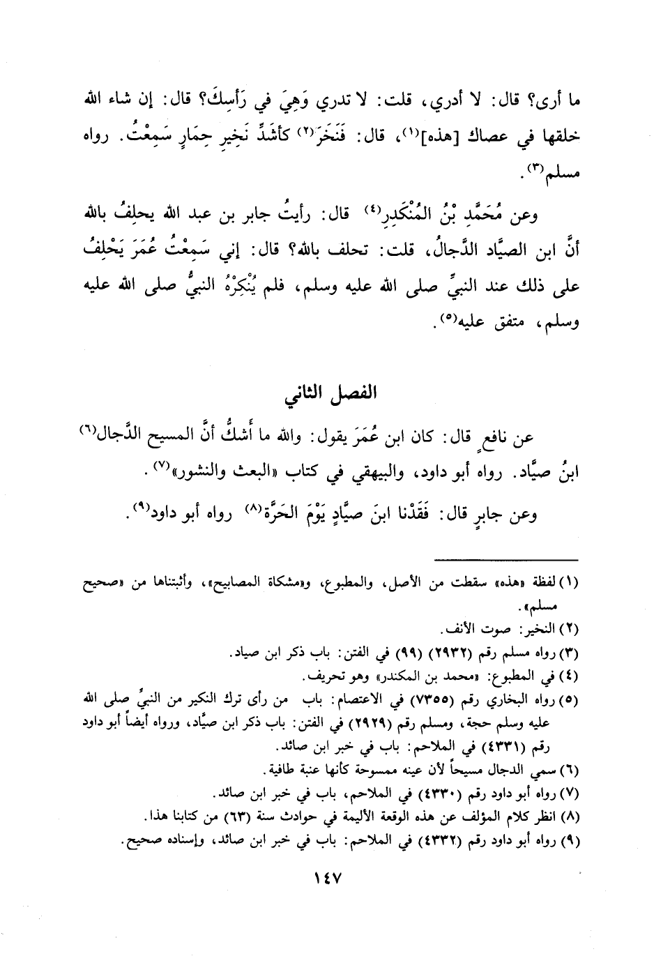 [9] رواه أبو داود رقم (4332) في الملاحم: باب في خبر ابن صائد، وإسناده صحيح.