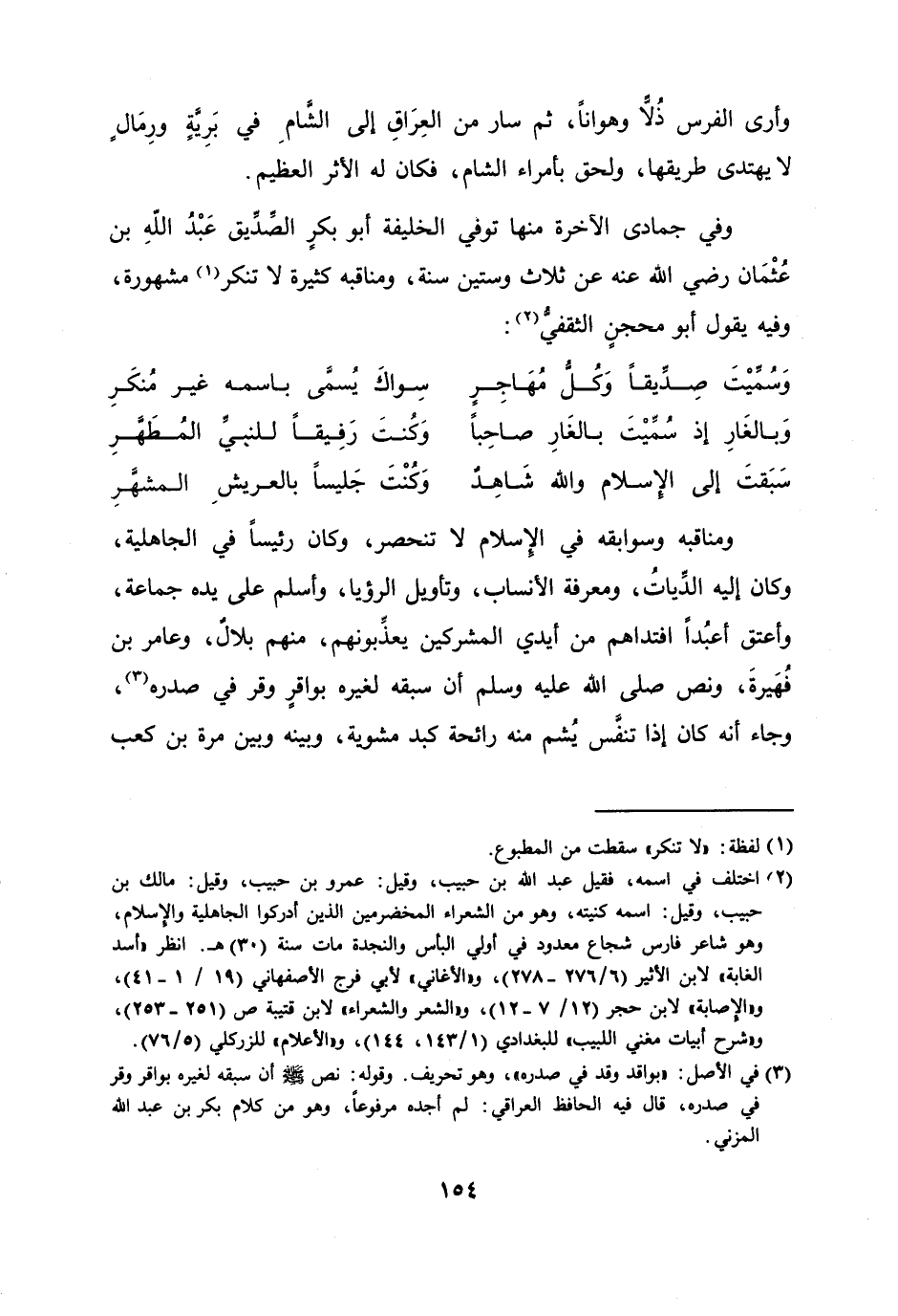 وفي جمادى الآخرة منها توفي الخليفة أبو بكر الصّدّيق عبد الله بن عثمان رضي الله عنه عن ثلاث وستين سنة، ومناقبه كثيرة لا تنكر [1] مشهورة، وفيه يقول أبو محجن الثقفيّ [2] :