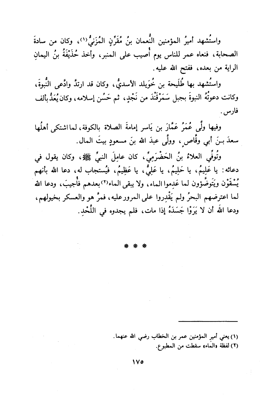 واستشهد أمير المؤمنين النّعمان بن مقرّن المزنيّ [1] ، وكان من سادة الصحابة، فنعاه عمر للناس يوم أصيب على المنبر، وأخذ حذيفة بن اليمان الراية من بعده، ففتح الله عليه.