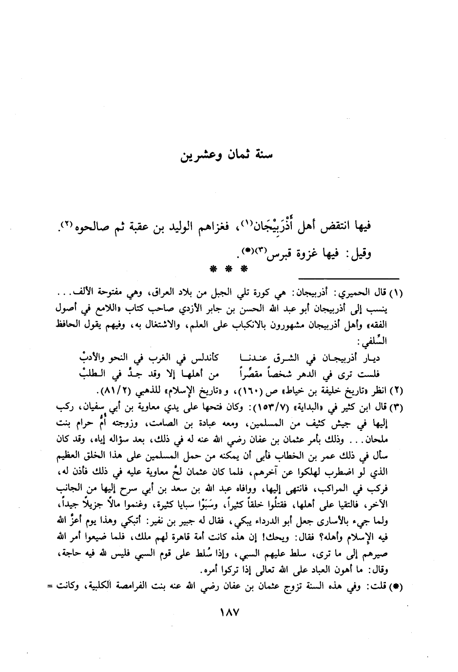 فيها انتقض أهل أذربيجان [1] ، فغزاهم الوليد بن عقبة ثم صالحوه [2] .