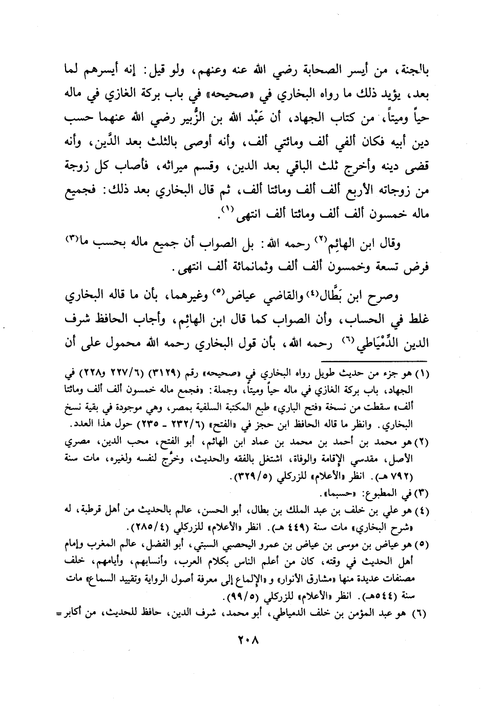 [1] هو جزء من حديث طويل رواه البخاري في «صحيحه» رقم (3129) (6/ 227 و 228) في الجهاد، باب بركة الغازي في ماله حيا وميتا، وجملة: «فجمع ماله خمسون ألف ألف ومائتا ألف» سقطت من نسخة «فتح الباري» طبع المكتبة السلفية بمصر، وهي موجودة في بقية نسخ البخاري. وانظر ما قاله الحافظ ابن حجز في «الفتح» (6/ 232- 235) حول هذا العدد.