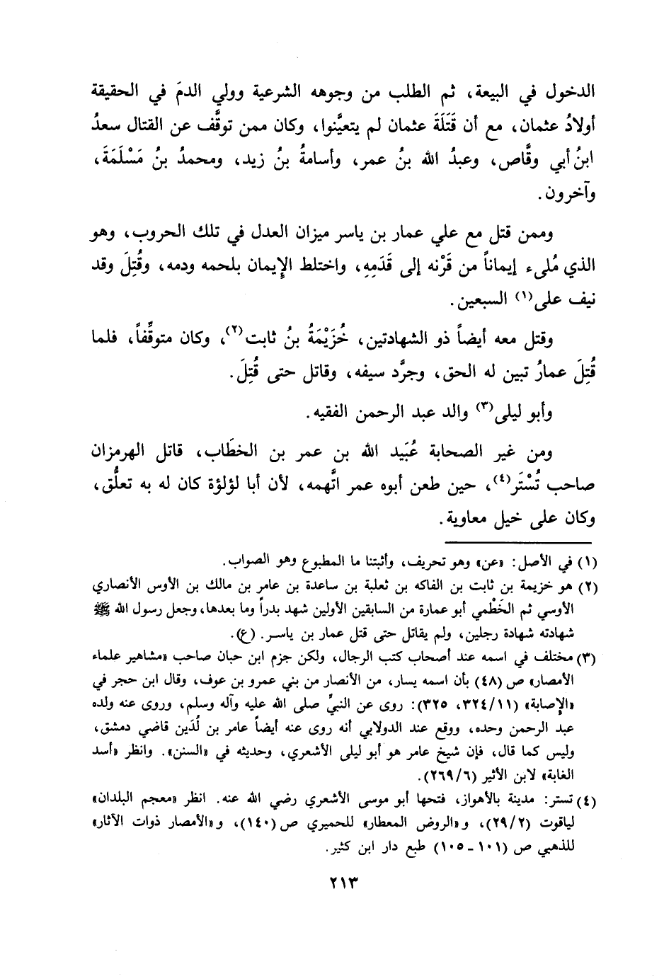 وممن قتل مع علي عمار بن ياسر ميزان العدل في تلك الحروب، وهو الذي ملئ إيمانا من قرنه إلى قدمه، واختلط الإيمان بلحمه ودمه، وقتل وقد نيف على [1] السبعين.