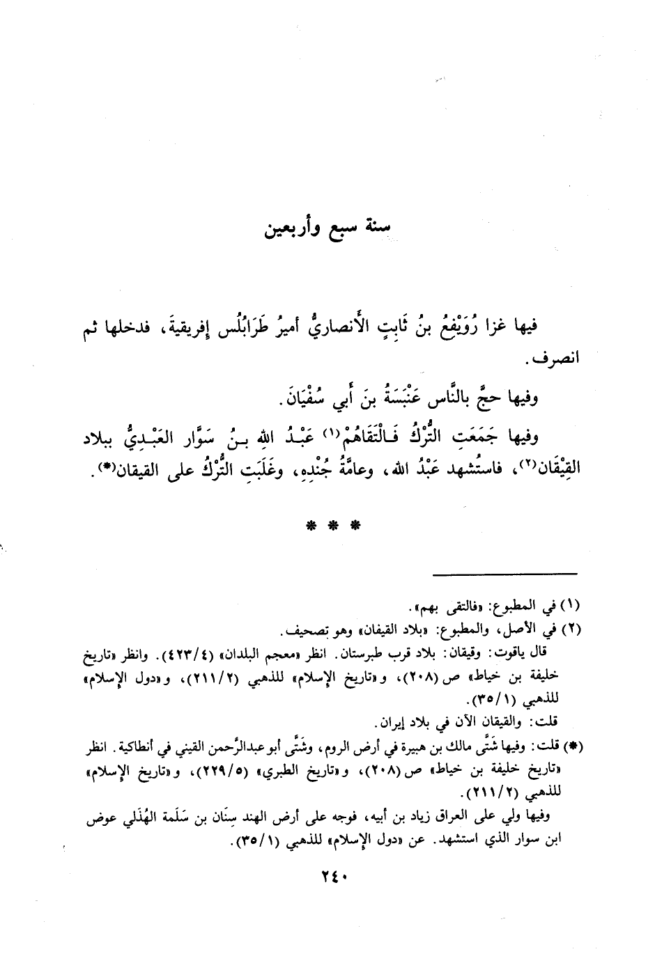 [3] قلت: وفيها شتّى مالك بن هبيرة في أرض الروم، وشتّى أبو عبد الرّحمن القيني في أنطاكية. انظر «تاريخ خليفة بن خياط» ص (208) ، و «تاريخ الطبري» (5/ 229) ، و «تاريخ الإسلام» للذهبي (2/ 211) .