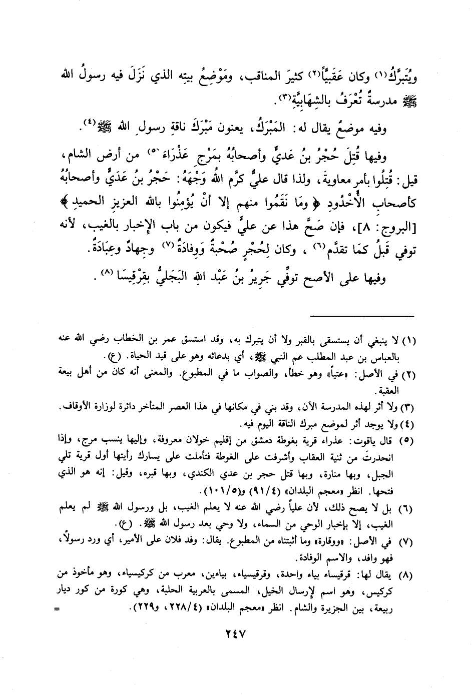 وفيه موضع يقال له: المبرك، يعنون مبرك ناقة رسول الله صلى الله عليه وسلم [4] .