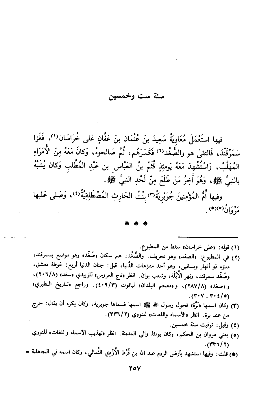 وفيها أمّ المؤمنين جويرية [3] بنت الحارث المصطلقيّة [4] ، وصلى عليها مروان [5] [6] .