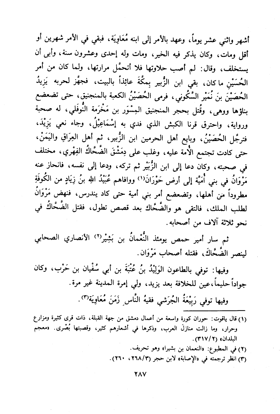 ثم سار أمير حمص يومئذ النّعمان بن بشير [2] الأنصاري الصحابي لينصر الضّحّاك، فقتله أصحاب مروان.