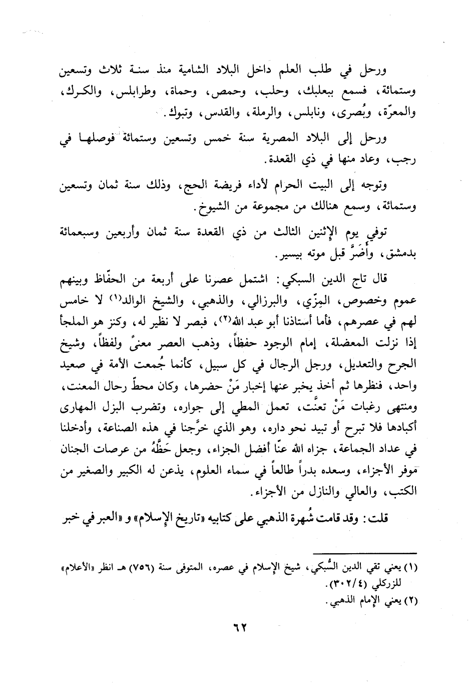 قلت: وقد قامت شهرة الذهبي على كتابيه «تاريخ الإسلام» و «العبر في خبر