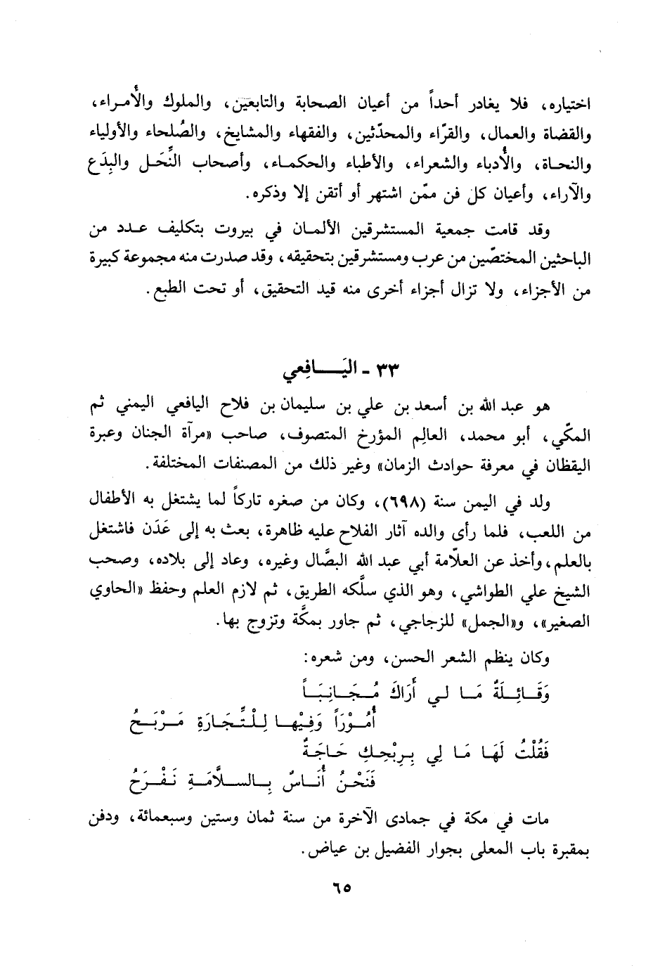 هو عبد الله بن أسعد بن علي بن سليمان بن فلاح اليافعي اليمني ثم المكّي، أبو محمد، العالم المؤرخ المتصوف، صاحب «مرآة الجنان وعبرة اليقظان في معرفة حوادث الزمان» وغير ذلك من المصنفات المختلفة.