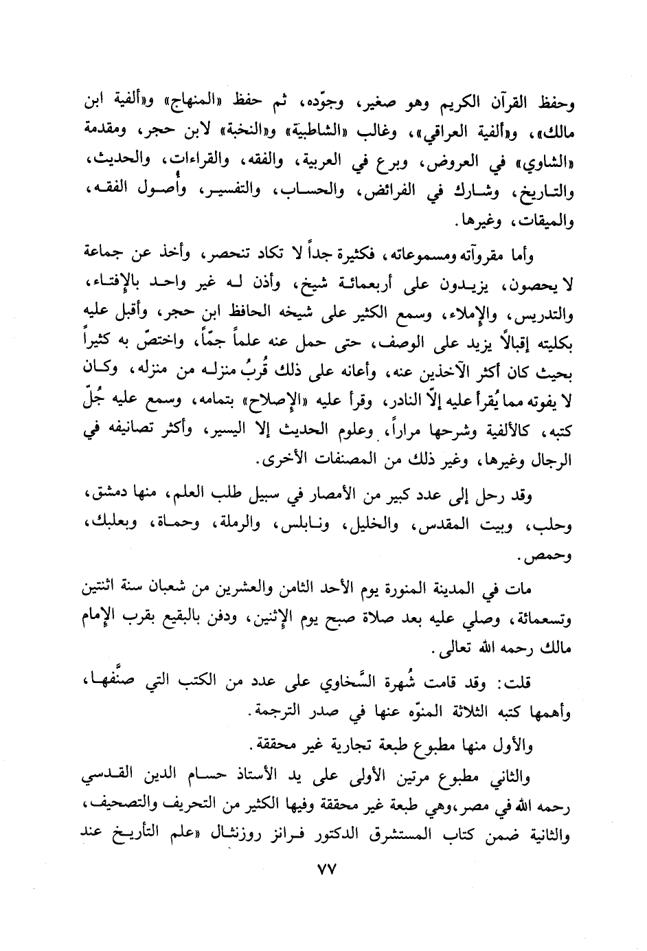 قلت: وقد قامت شهرة السّخاوي على عدد من الكتب التي صنّفها، وأهمها كتبه الثلاثة المنوّه عنها في صدر الترجمة.