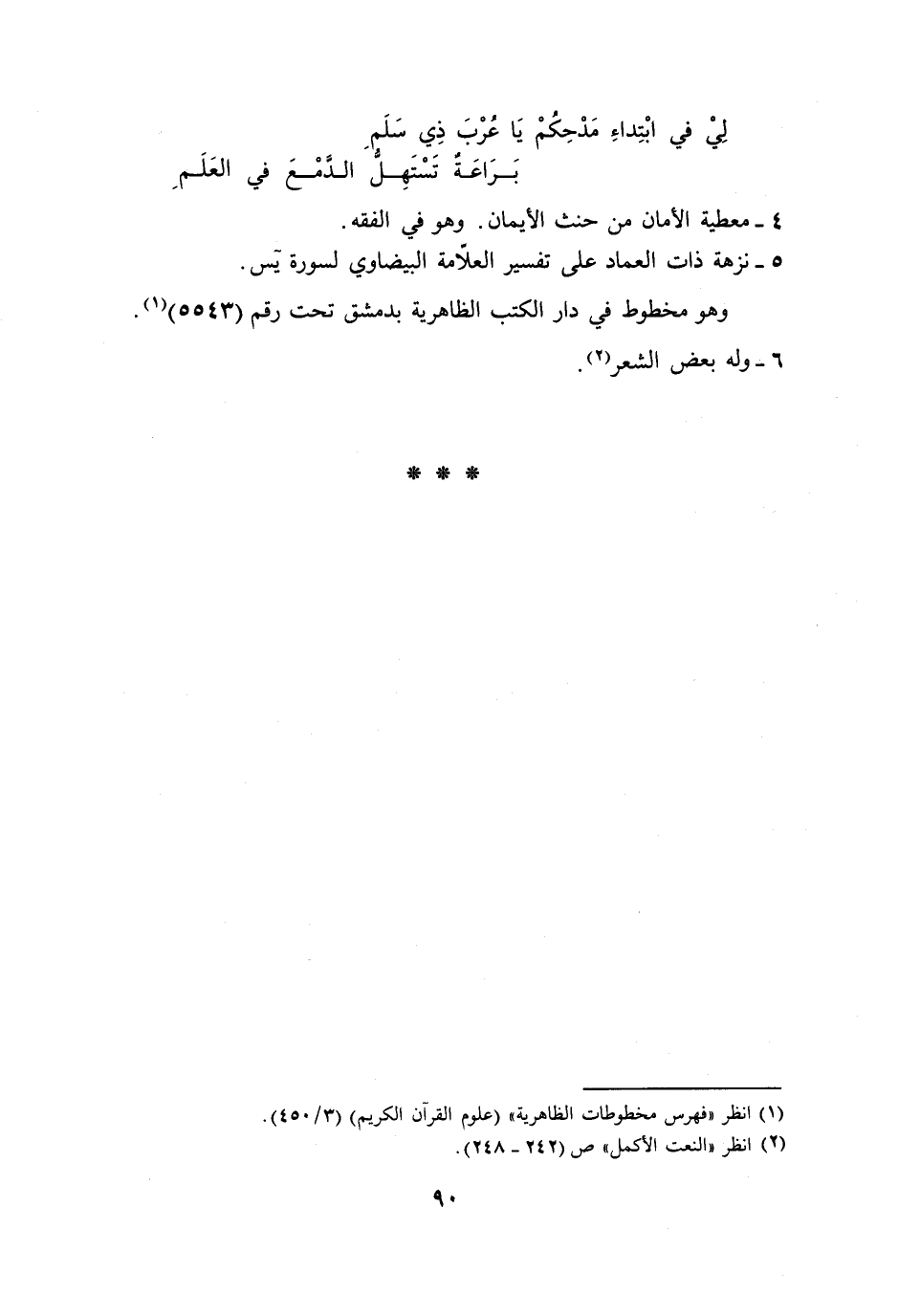5- نزهة ذات العماد على تفسير العلّامة البيضاوي لسورة يس.