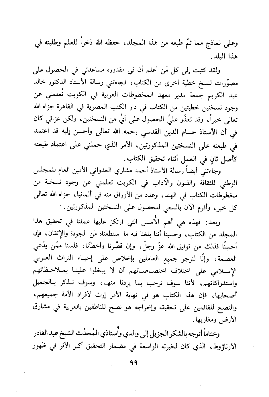 وختاما أتوجه بالشكر الجزيل إلى والدي وأستاذي المحدّث الشيخ عبد القادر الأرناؤوط، الذي كان لخبرته الواسعة في مضمار التحقيق أكبر الأثر في ظهور