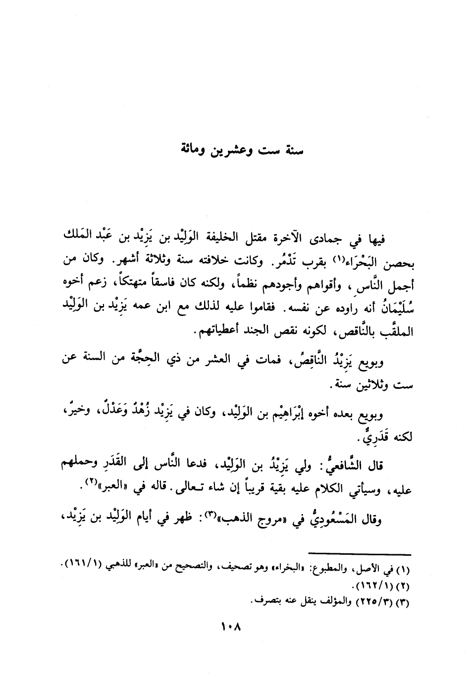 قال الشّافعيّ: ولي يزيد بن الوليد، فدعا النّاس إلى القدر وحملهم عليه، وسيأتي الكلام عليه بقية قريبا إن شاء تعالى. قاله في «العبر» [2] .