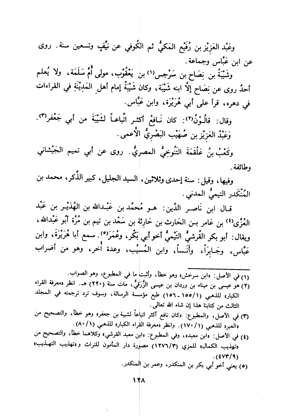 [3] في الأصل، والمطبوع: «كان نافع أكثر اتباعا لشيبة بن جعفر» وهو خطأ، والتصحيح من «العبر» للذهبي (1/ 170) . وانظر «معرفة القراء الكبار» للذهبي (1/ 80) .