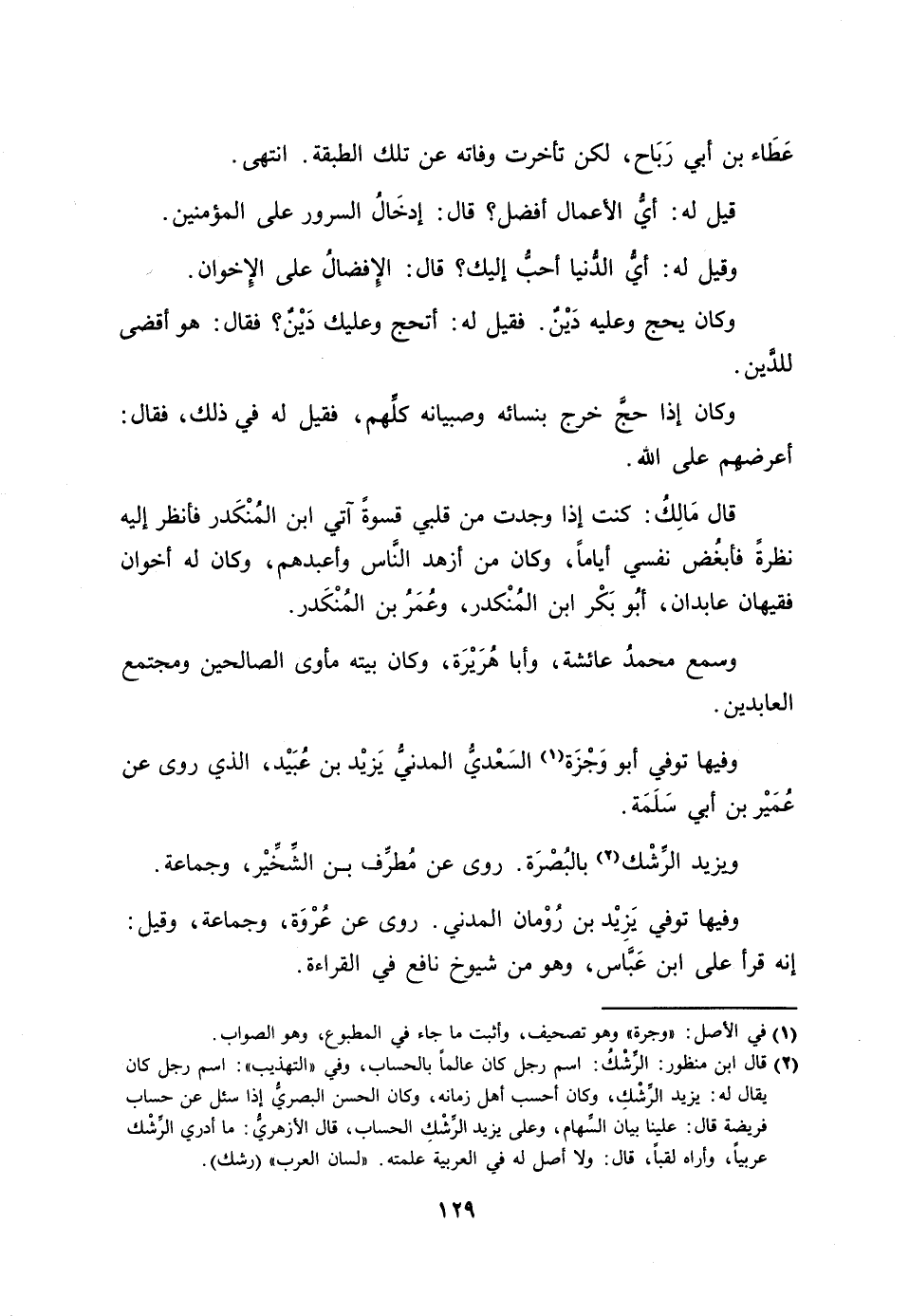 [2] قال ابن منظور: الرّشك: اسم رجل كان عالما بالحساب، وفي «التهذيب» : اسم رجل كان يقال له: يزيد الرّشك، وكان أحسب أهل زمانه، وكان الحسن البصريّ إذا سئل عن حساب فريضة قال: علينا بيان السّهام، وعلى يزيد الرّشك الحساب، قال الأزهريّ: ما أدري الرّشك عربيا، وأراه لقبا، قال: ولا أصل له في العربية علمته. «لسان العرب» (رشك) .