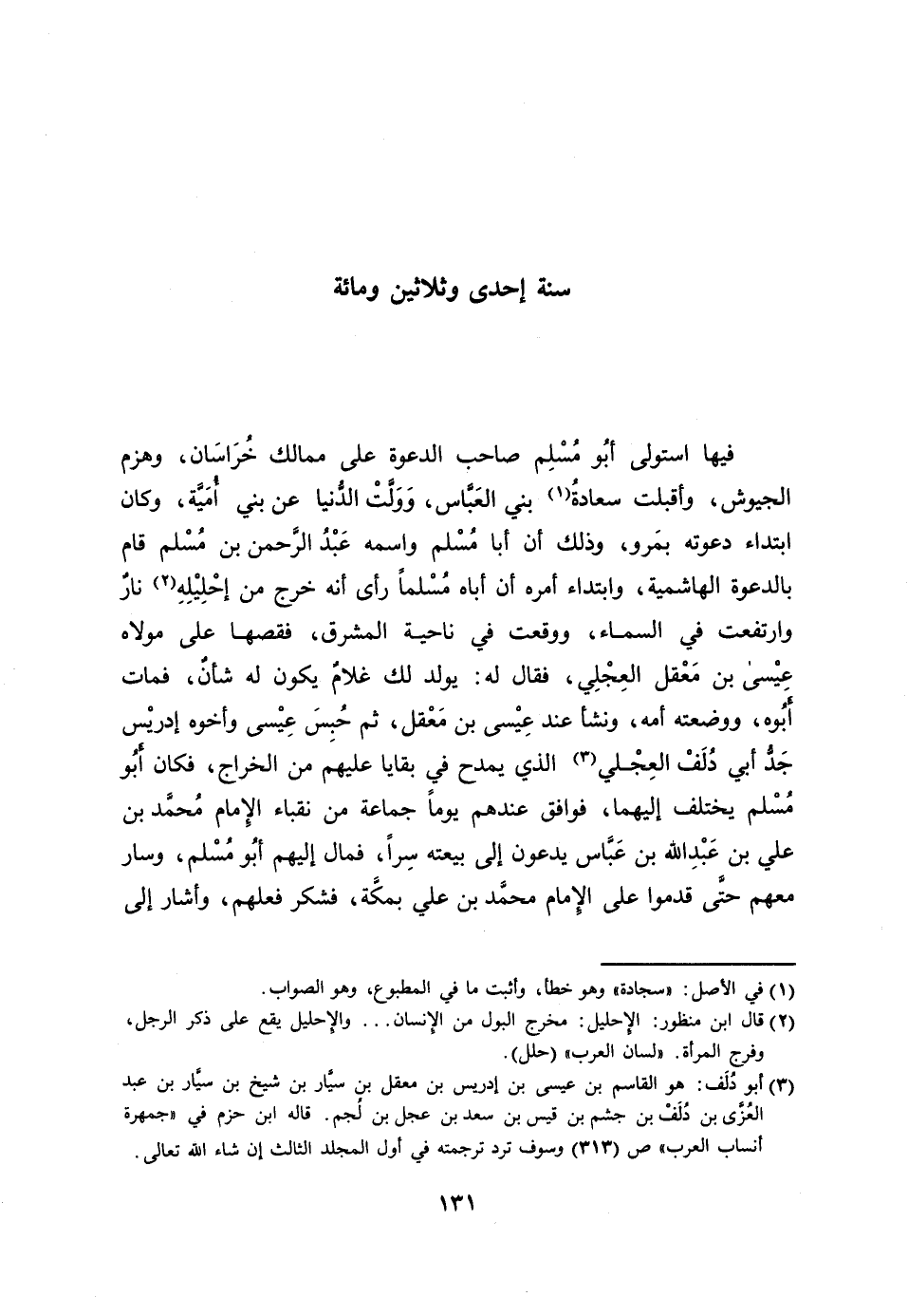 [3] أبو دلف: هو القاسم بن عيسى بن إدريس بن معقل بن سيّار بن شيخ بن سيّار بن عبد العزّى بن دلف بن جشم بن قيس بن سعد بن عجل بن لجم. قاله ابن حزم في «جمهرة أنساب العرب» ص (313) وسوف ترد ترجمته في أول المجلد الثالث إن شاء الله تعالى.