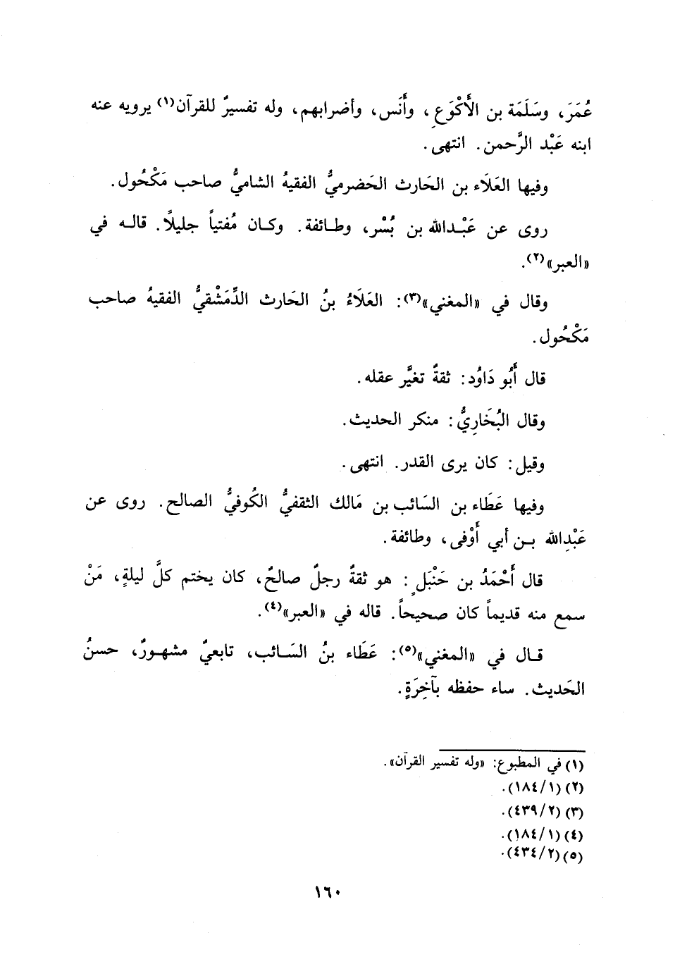 وقال في «المغني» [3] : العلاء بن الحارث الدّمشقيّ الفقيه صاحب مكحول.
