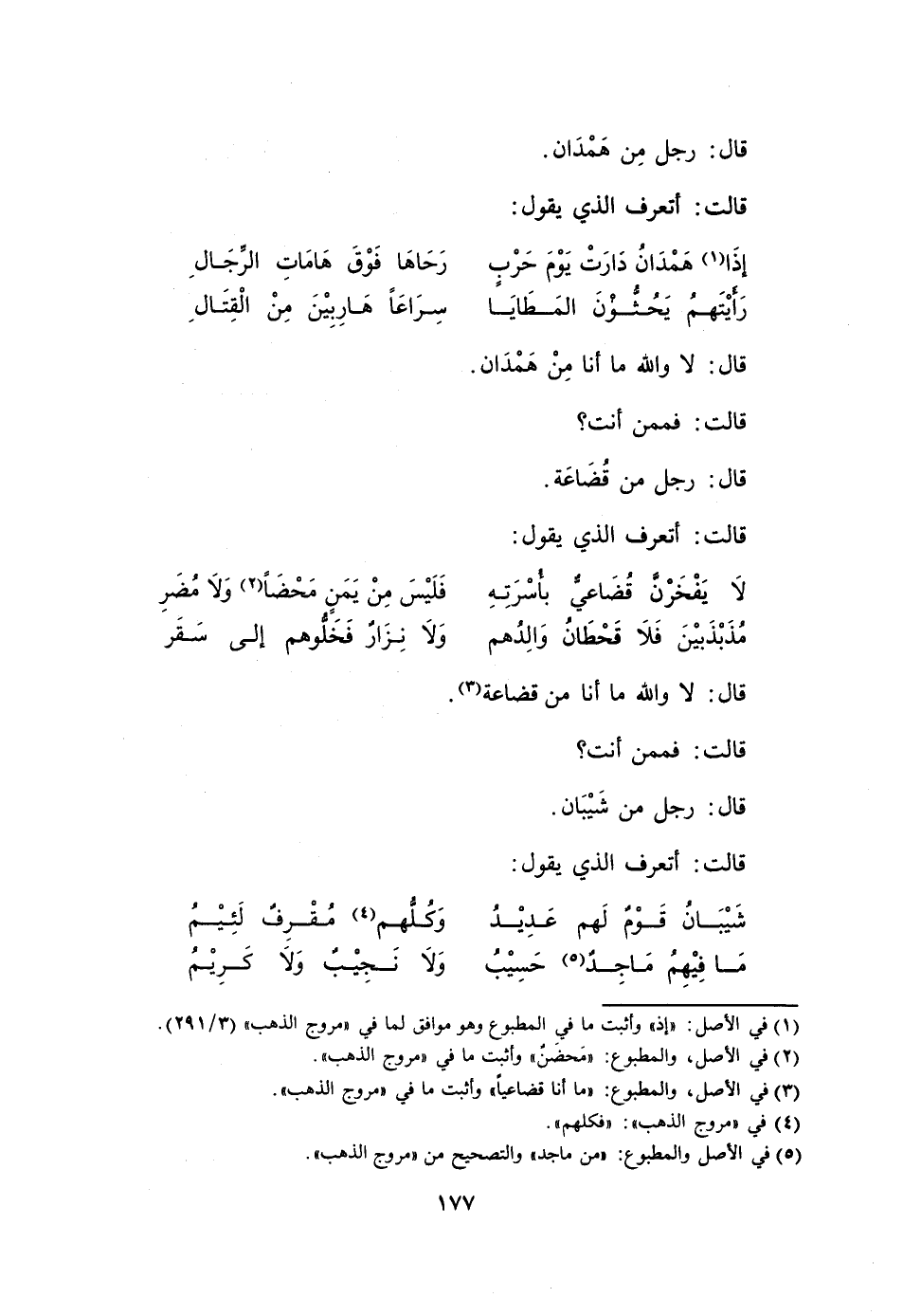 [3] في الأصل، والمطبوع: «ما أنا قضاعيا» وأثبت ما في «مروج الذهب» .