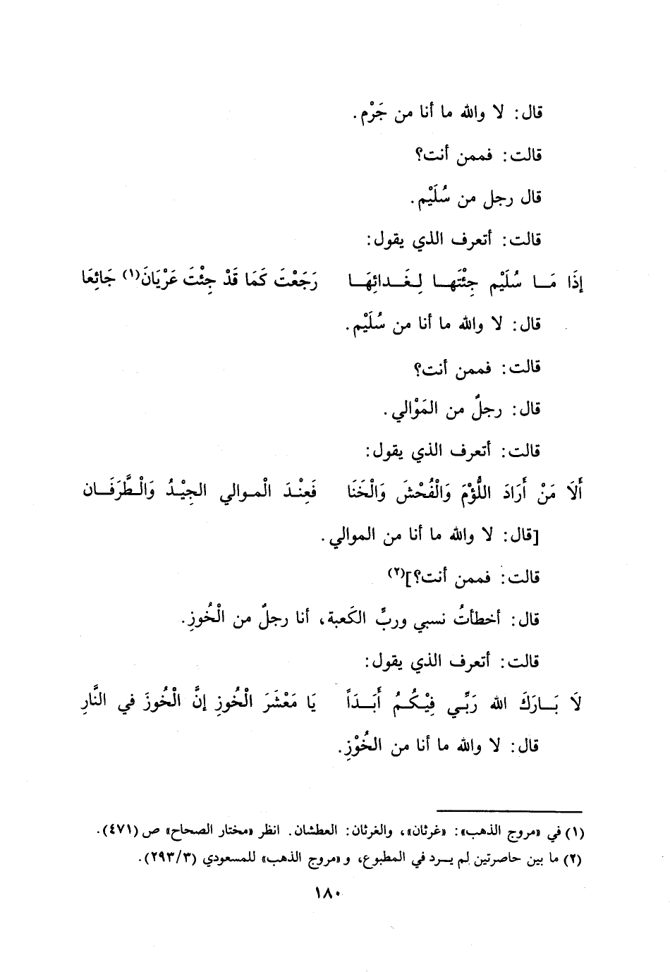 قالت: فممن أنت؟] [2] قال: أخطأت نسبي وربّ الكعبة، أنا رجل من الخوز.