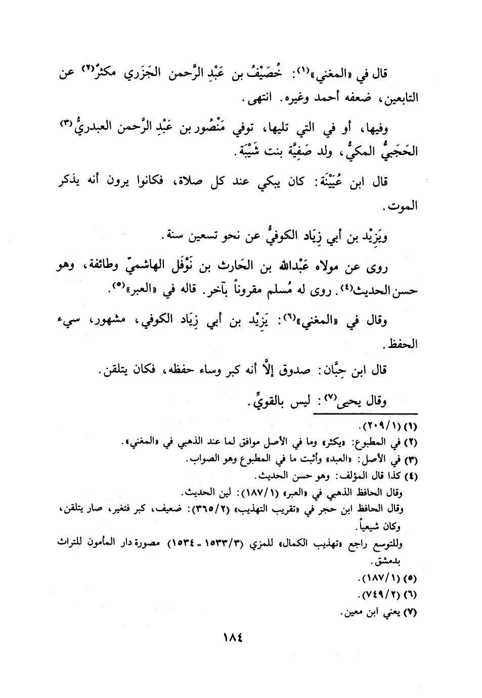 [2] في المطبوع: «يكثر» وما في الأصل موافق لما عند الذهبي في «المغني» .
