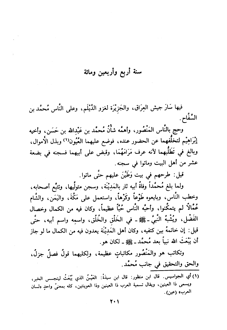وحج بالنّاس المنصور، وأهمّه شأن محمّد بن عبد الله بن حسن، وأخيه إبراهيم لتخلّفهما عن الحضور عنده، فوضع عليهما العيون [1] وبذل الأموال، وبالغ في تطلّبهما لأنه عرف مرامهما، وقبض على أبيهما فسجنه في بضعة عشر من أهل البيت وماتوا في سجنه.
