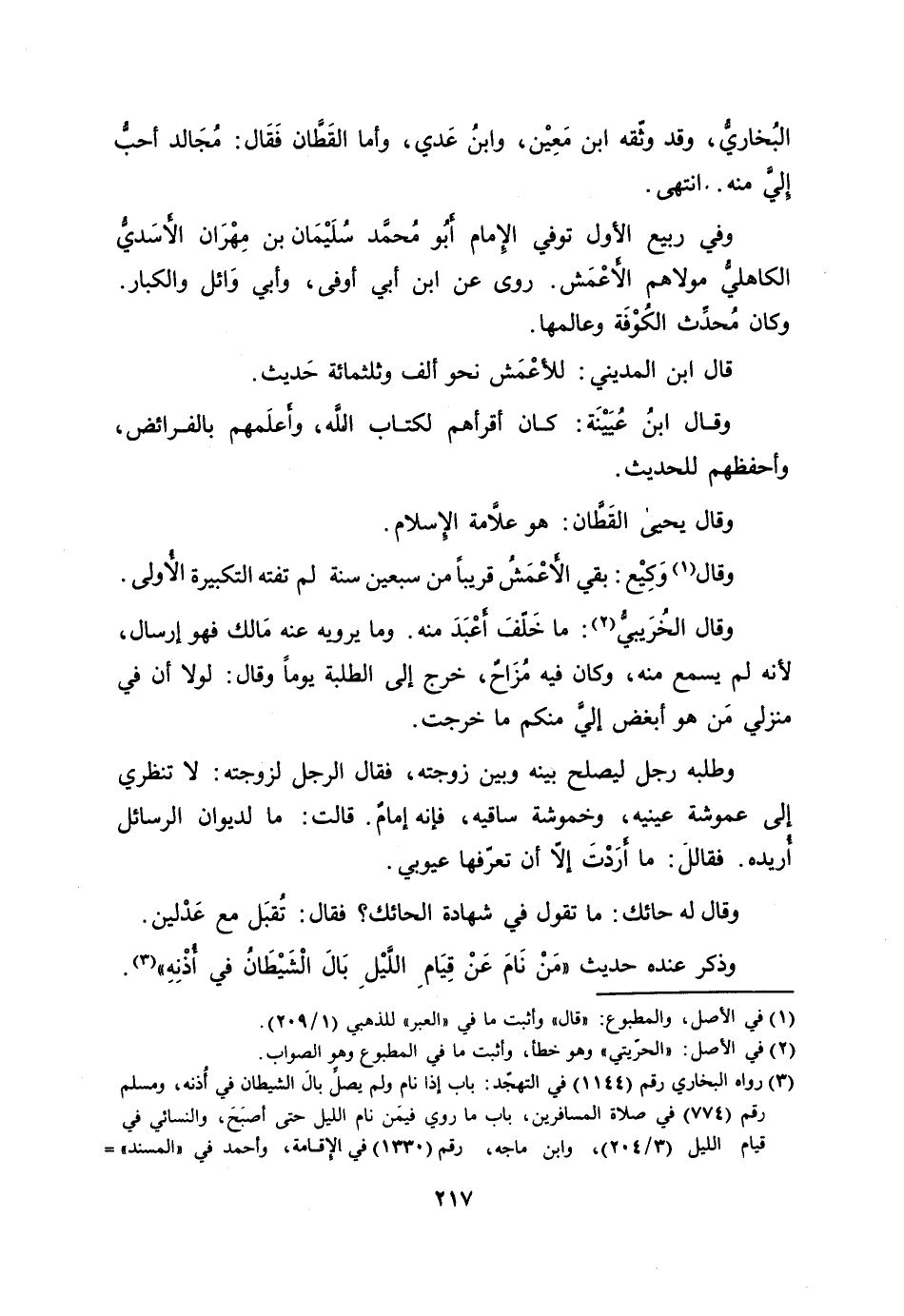 وذكر عنده حديث «من نام عن قيام اللّيل بال الشيطان في أذنه» [3] .