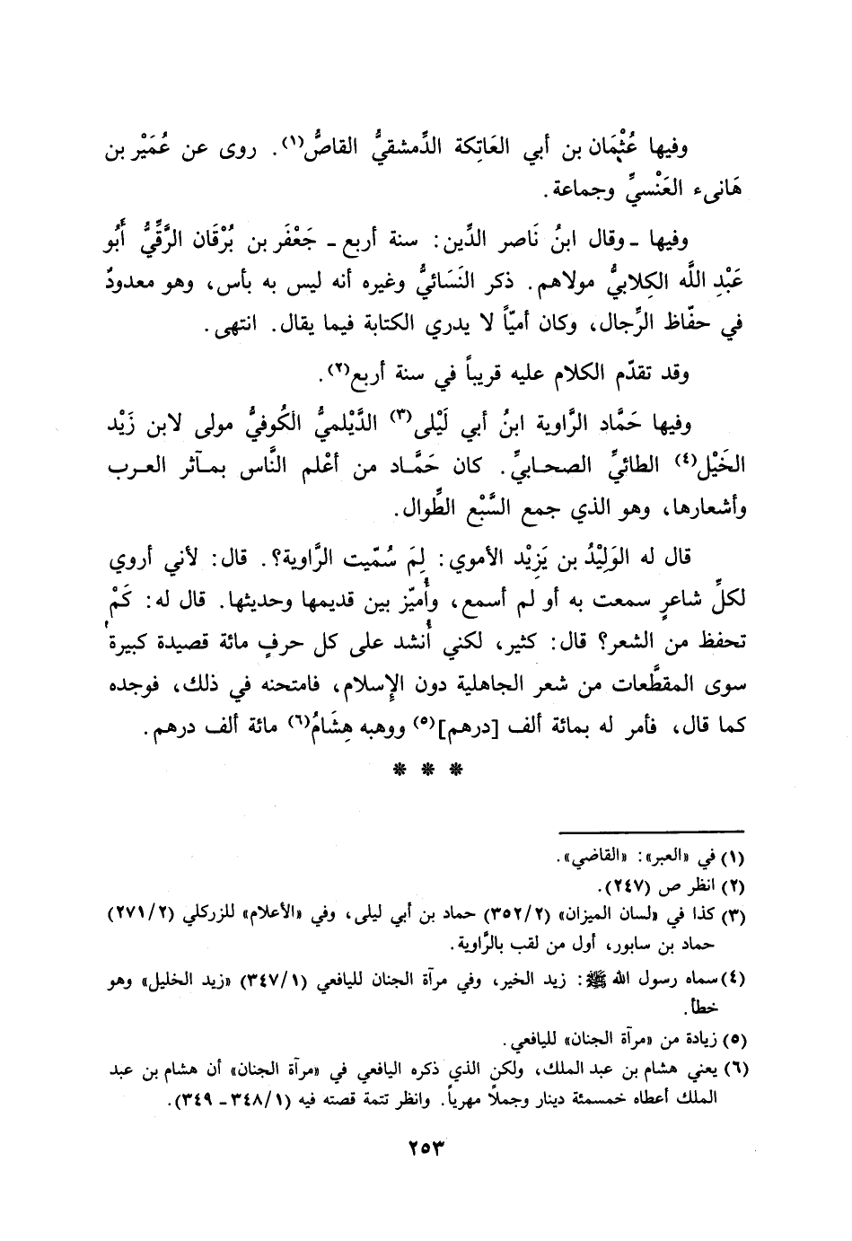 وفيها حمّاد الرّاوية ابن أبي ليلى [3] الدّيلميّ الكوفيّ مولى لابن زيد الخيل [4] الطائيّ الصحابيّ. كان حمّاد من أعلم النّاس بمآثر العرب وأشعارها، وهو الذي جمع السّبع الطّوال.