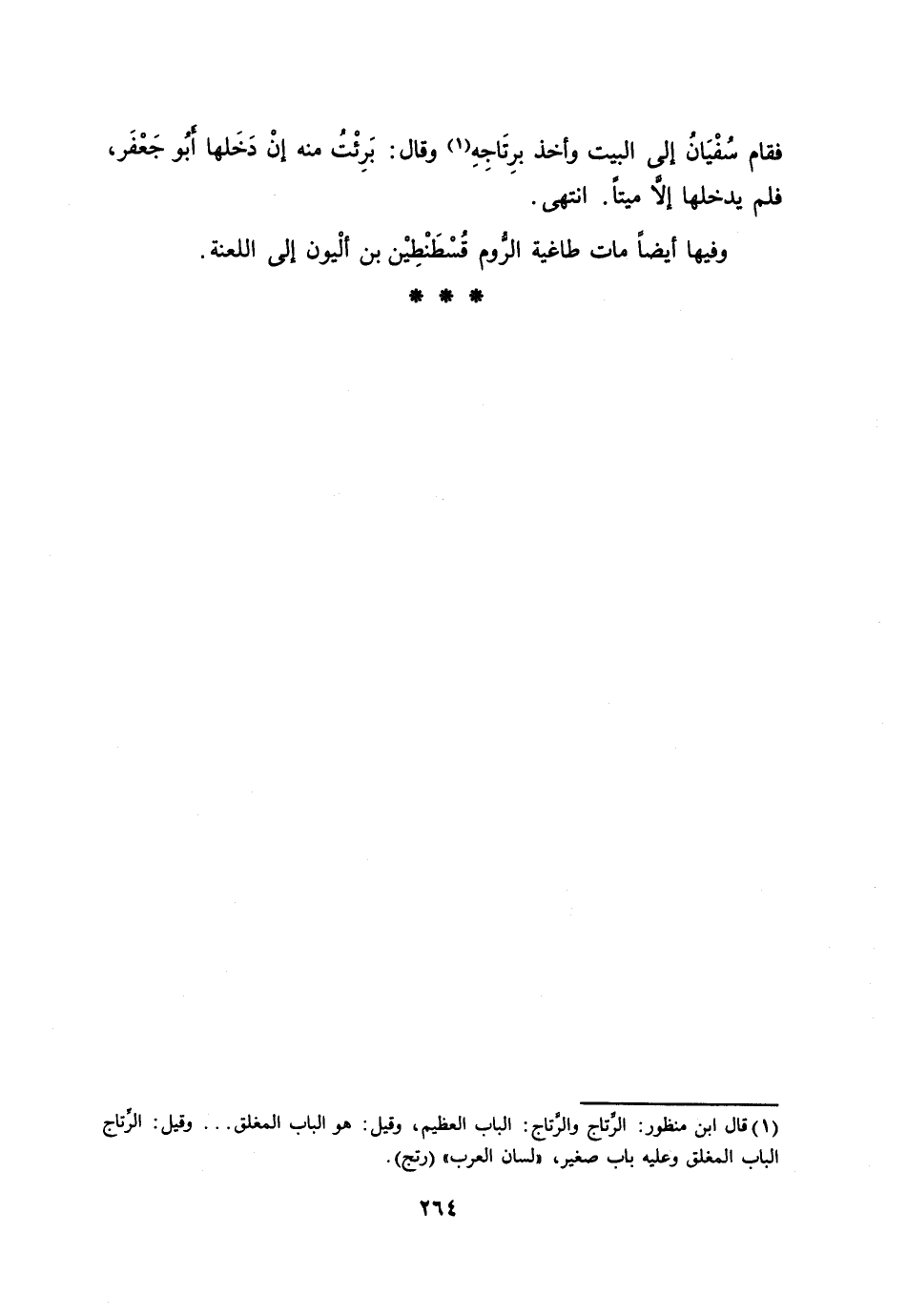 فقام سفيان إلى البيت وأخذ برتاجه [1] وقال: برئت منه إن دخلها أبو جعفر، فلم يدخلها إلّا ميتا. انتهى.
