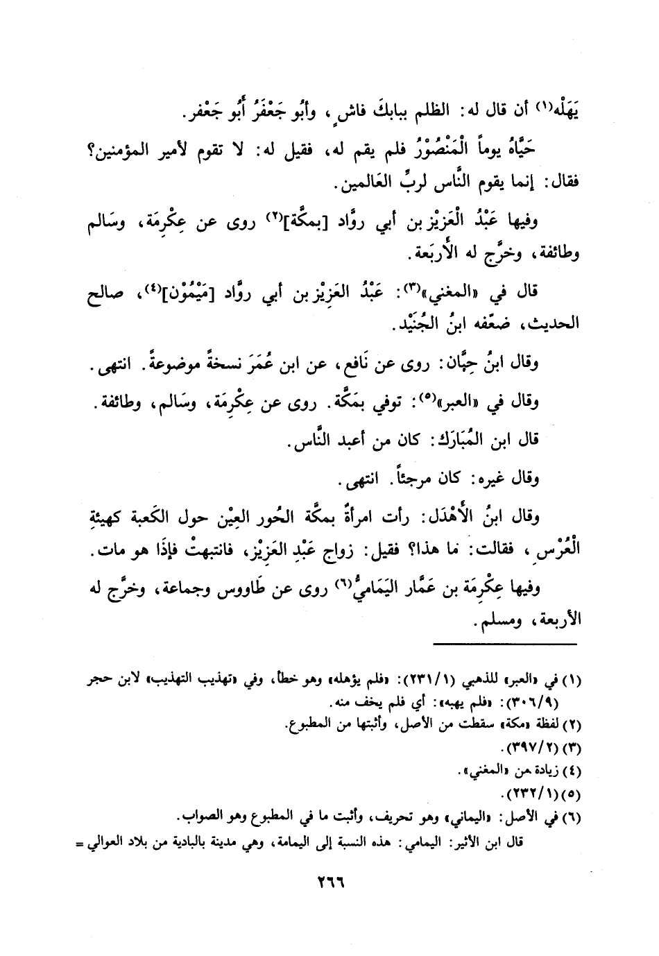 وفيها عبد العزيز بن أبي روّاد [بمكّة] [2] روى عن عكرمة، وسالم وطائفة، وخرّج له الأربعة.
