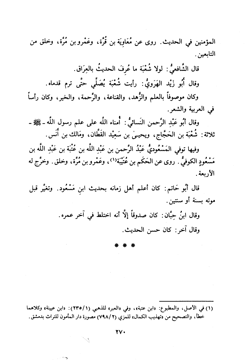 [1] في الأصل، والمطبوع: «ابن عتبة» ، وفي «العبر» للذهبي (1/ 235) : «ابن عيينة» وكلاهما خطأ، والتصحيح من «تهذيب الكمال» للمزي (2/ 798) مصورة دار المأمون للتراث بدمشق.