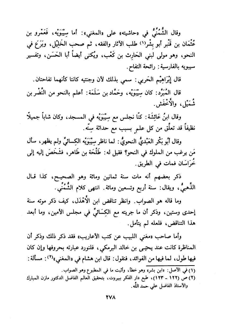 وأما صاحب «مغني اللبيب عن كتب الأعاريب» فقد ذكر ذلك وذكر أن المناظرة كانت عند يحيى بن خالد البرمكي، فلنورد عبارته بحروفها وإن كان فيها طول، لما فيها من الفوائد، فنقول: قال ابن هشام في «المغني» [2] : مسألة: